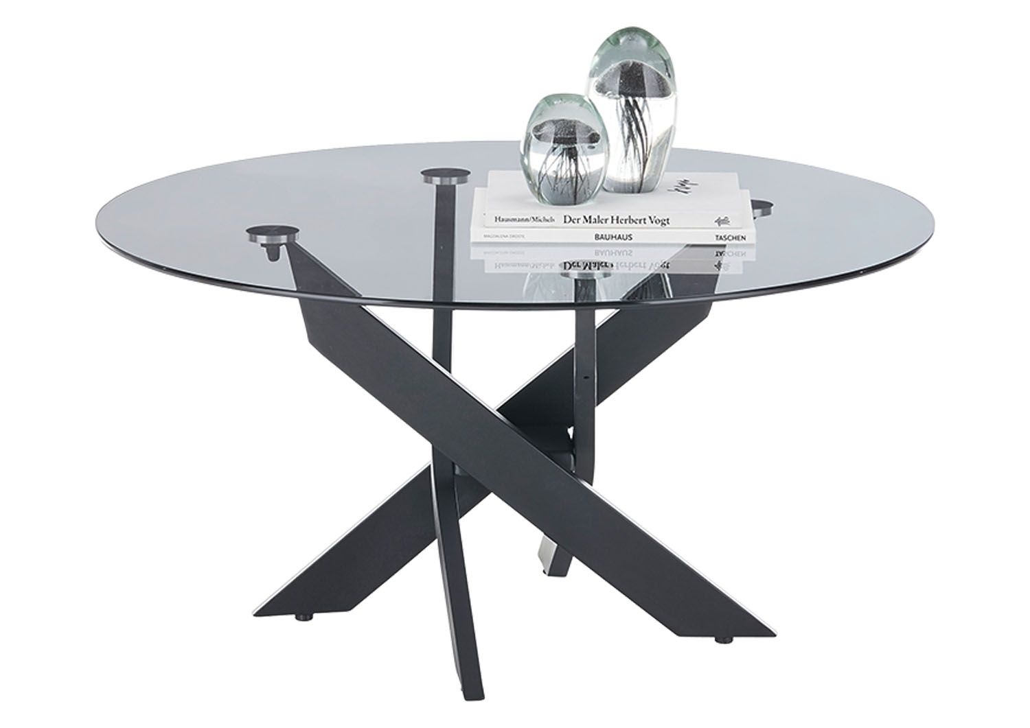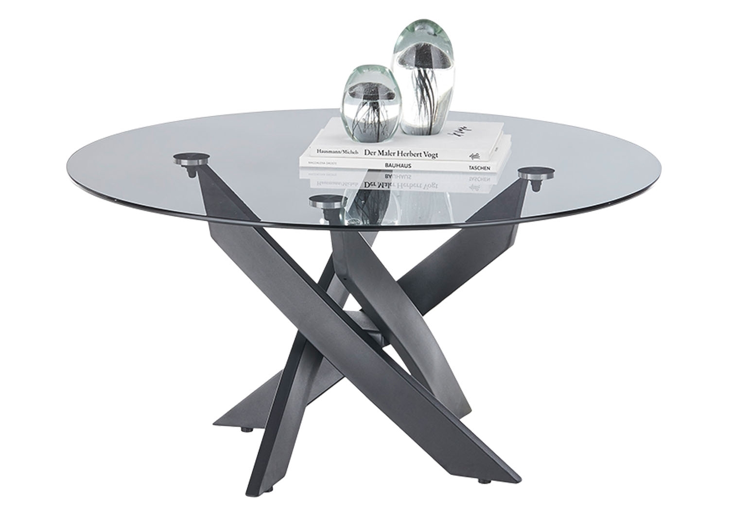Ø 80 cm - Transparent - Schwarz matt - Grauglas - Metallgestell