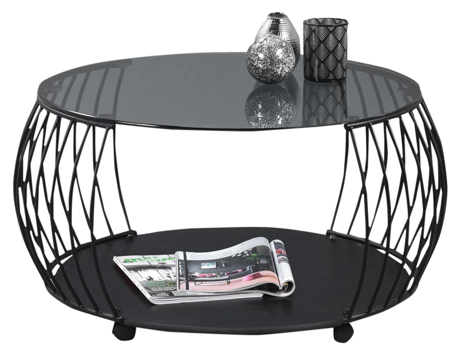 Schwarz - Grauglas - Metallgestell - Ø 80 cm - mit Rollen