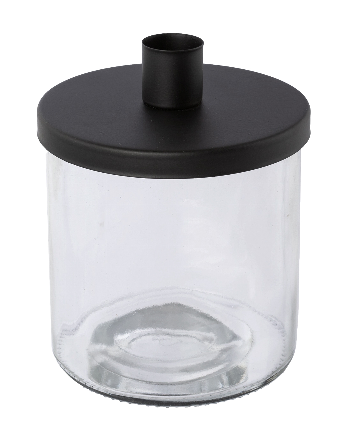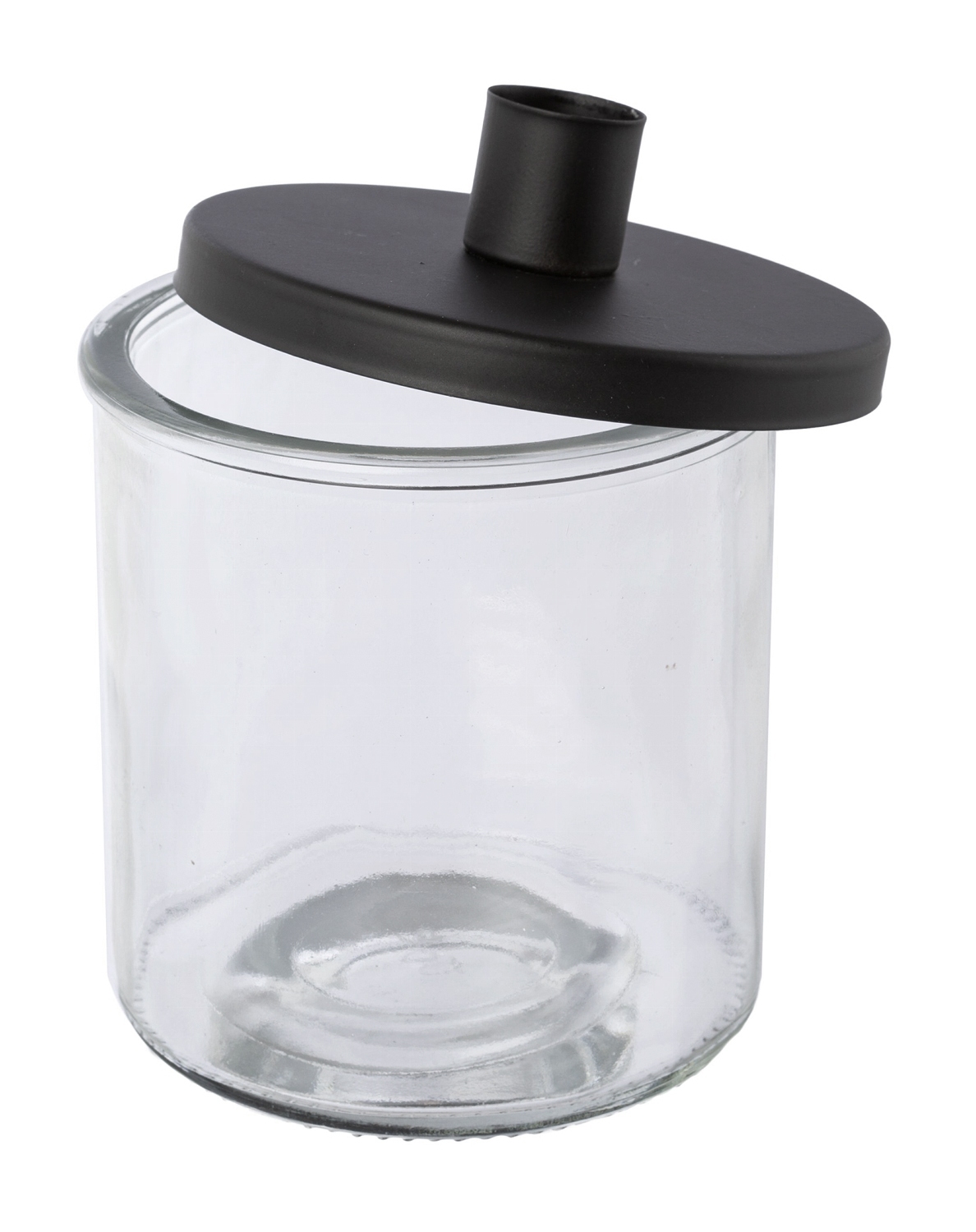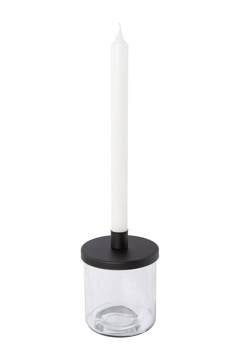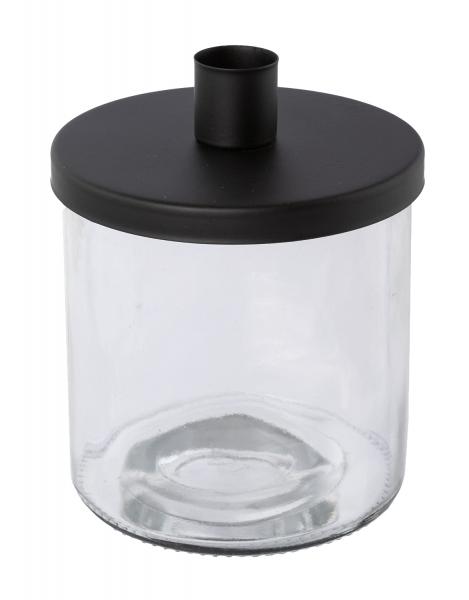 H 14,5 cm - Transparent - Schwarz - Metall - mit Kerzenhalteraufsatz
