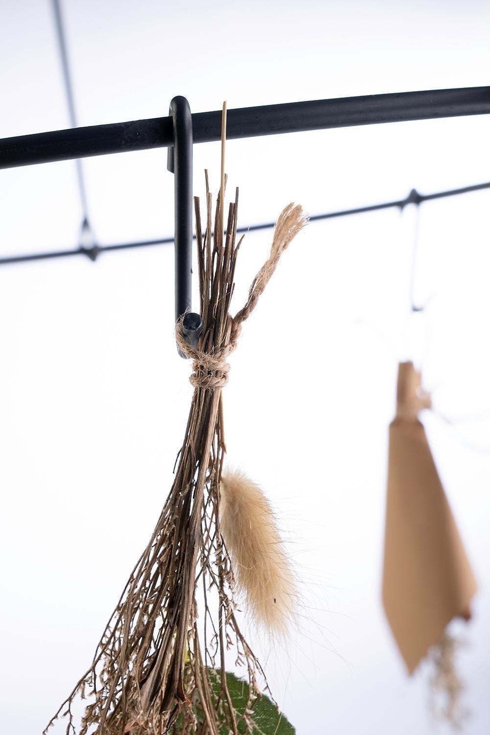 Der Deko-Halter FILIZ in Schwarz überzeugt mit modernem Design und vielseitiger Einsatzmöglichkeit. Gefertigt aus stabilem Metall und ausgestattet mit einem praktischen Haken lässt er sich einfach aufhängen. Mit einem Durchmesser von 35 cm und einer Höhe von 37 cm ist FILIZ ideal für stilvolle Dekorationen im Flur, Wohnzimmer oder Eingangsbereich.