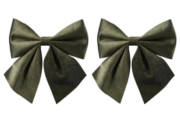 Das 2er Set Deko-Schleifen SATINNI in Grün sorgt für festliche Akzente in Ihrer Weihnachtsdekoration. Jede Schleife misst 15 cm in der Breite und 17 cm in der Höhe und ist aus Polyester gefertigt. Goldgelbe Glitzerstreifen verleihen den Schleifen einen edlen Schimmer und machen sie zum Blickfang. Ob am Tannenbaum, an Fenstern oder als Tischdekoration – die Schleifen lassen sich vielseitig einsetzen und bringen stimmungsvolle Eleganz in Ihr Zuhause.
