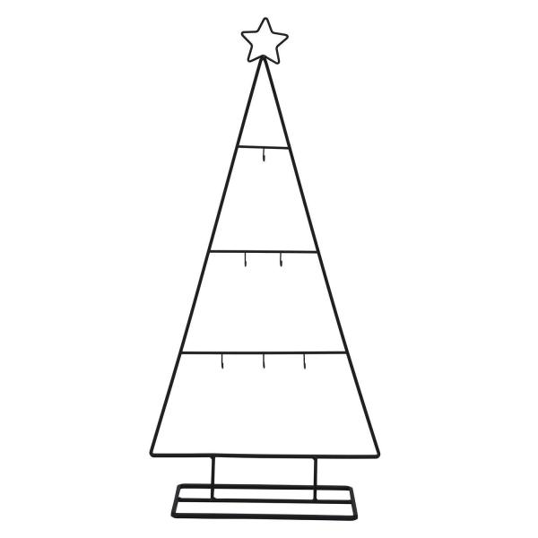 Der Deko-Tannenbaum BIRLY besteht aus schwarzem Metall und verfügt über eine Höhe von 60 cm sowie eine Breite von 28 cm. Auf der Spitze befindet sich ein Weihnachtsstern, der das Design ergänzt. Der Baum ist mit sechs Haken ausgestattet, an denen Weihnachtsdekoration aufgehängt werden kann. Durch die stabile Ausführung eignet sich der Deko-Tannenbaum für verschiedene Einsatzbereiche im Innenraum.