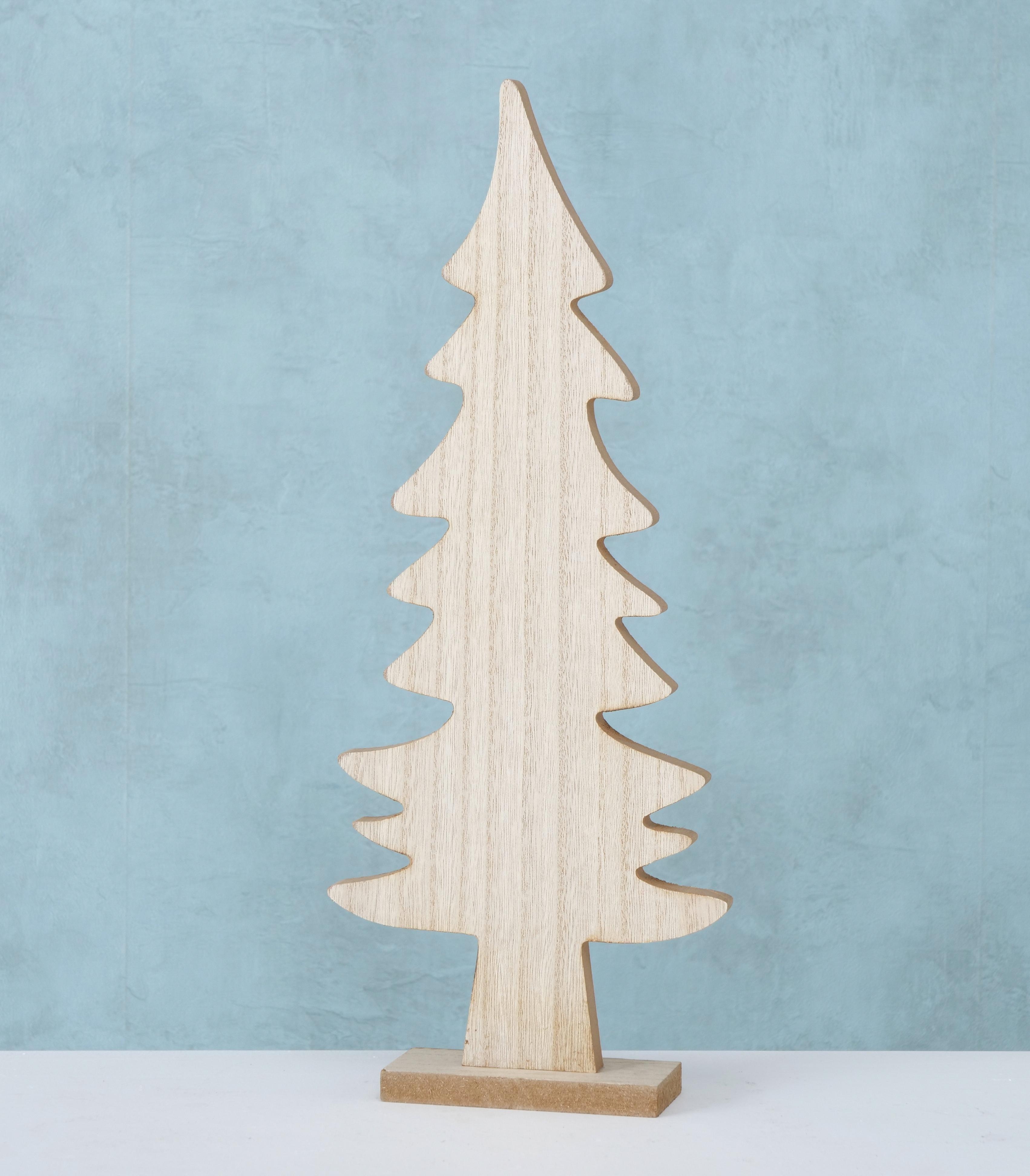 Der Deko-Tannenbaum in Beige besteht aus MDF und eignet sich als festliche Dekoration für die Winterzeit. Mit einer Breite von 16 cm, einer Höhe von 40 cm und einer Tiefe von 5 cm hat er ein kompaktes Format, das vielseitig eingesetzt werden kann. Der Baum lässt sich sowohl auf dem Tisch als auch auf einer Kommode oder im Fenster platzieren und fügt sich dadurch flexibel in unterschiedliche Wohnbereiche ein. Das schlichte Design ermöglicht eine einfache Kombination mit weiterer saisonaler Dekoration.