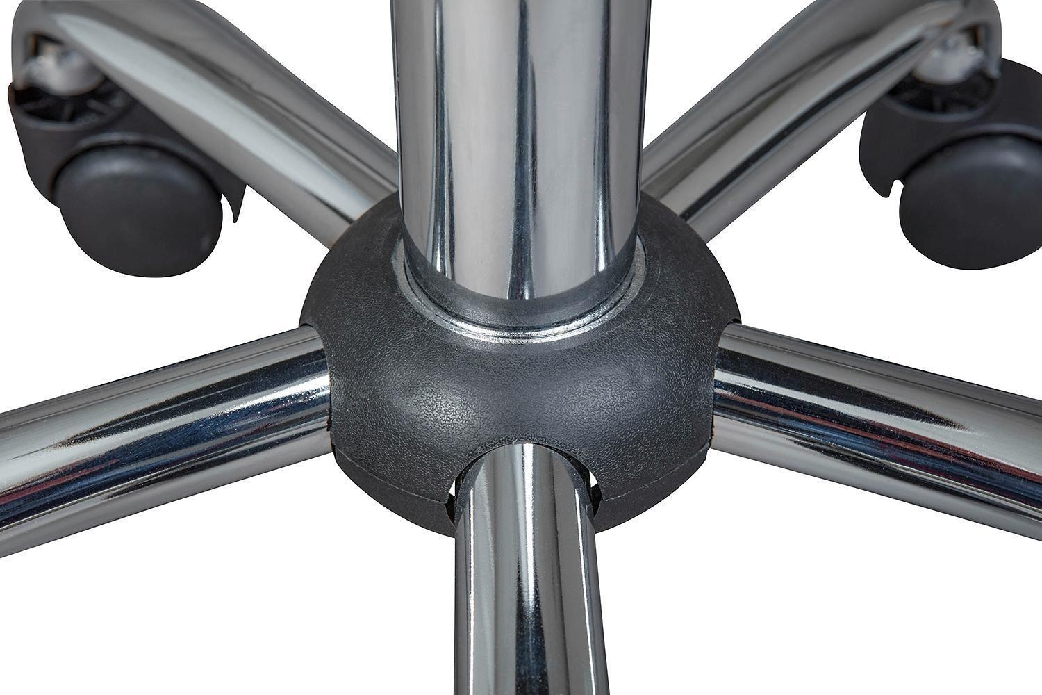 Der Drehhocker ARNO ist mit einem schwarzen Kunstlederbezug ausgestattet und verfügt über ein Gestell aus Metall in Chromfarben. Die Sitzhöhe kann mithilfe eines Gaslifts stufenlos von 52 cm bis 66 cm verstellt werden. Der Hocker ist mit fünf gebremsten Sicherheitsrollen versehen, die für einen sicheren Stand und flexible Beweglichkeit sorgen. Der Sitz hat einen Durchmesser von 35 cm und die Gesamthöhe beträgt 52 cm.