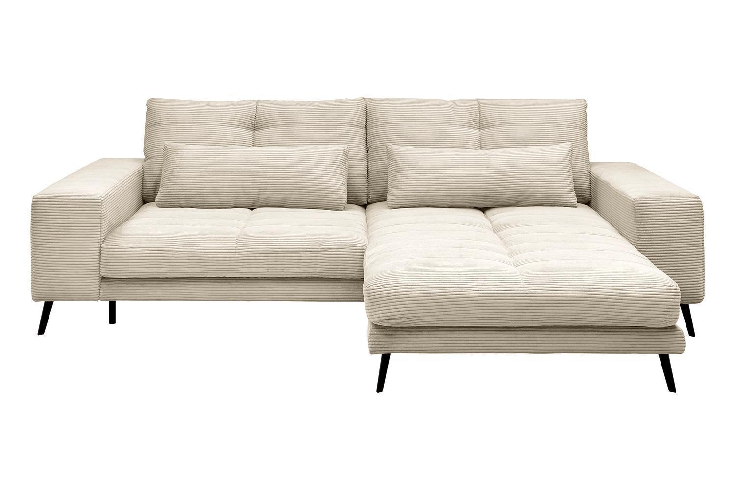 | Lieferumfang: | 1 Ecksofa mit 3 Rückenkissen und 2 Nierenkissen. Die Ottomane ist nur rechtsseitig montierbar |