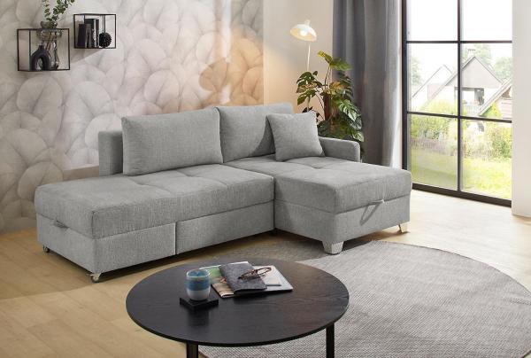 | Lieferumfang: | 1 Ecksofa mit dreh- und schwenkbarer Ottomane, Bettkasten, 2 Rückenkissen und 1 Zierkissen Die Ottomane ist beidseitig montierbar |