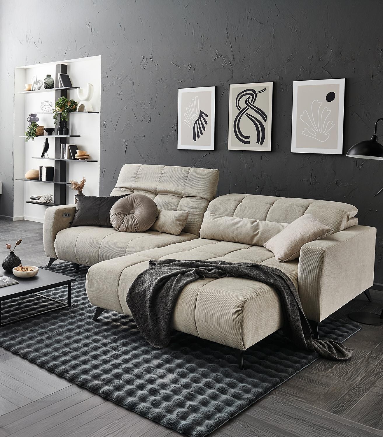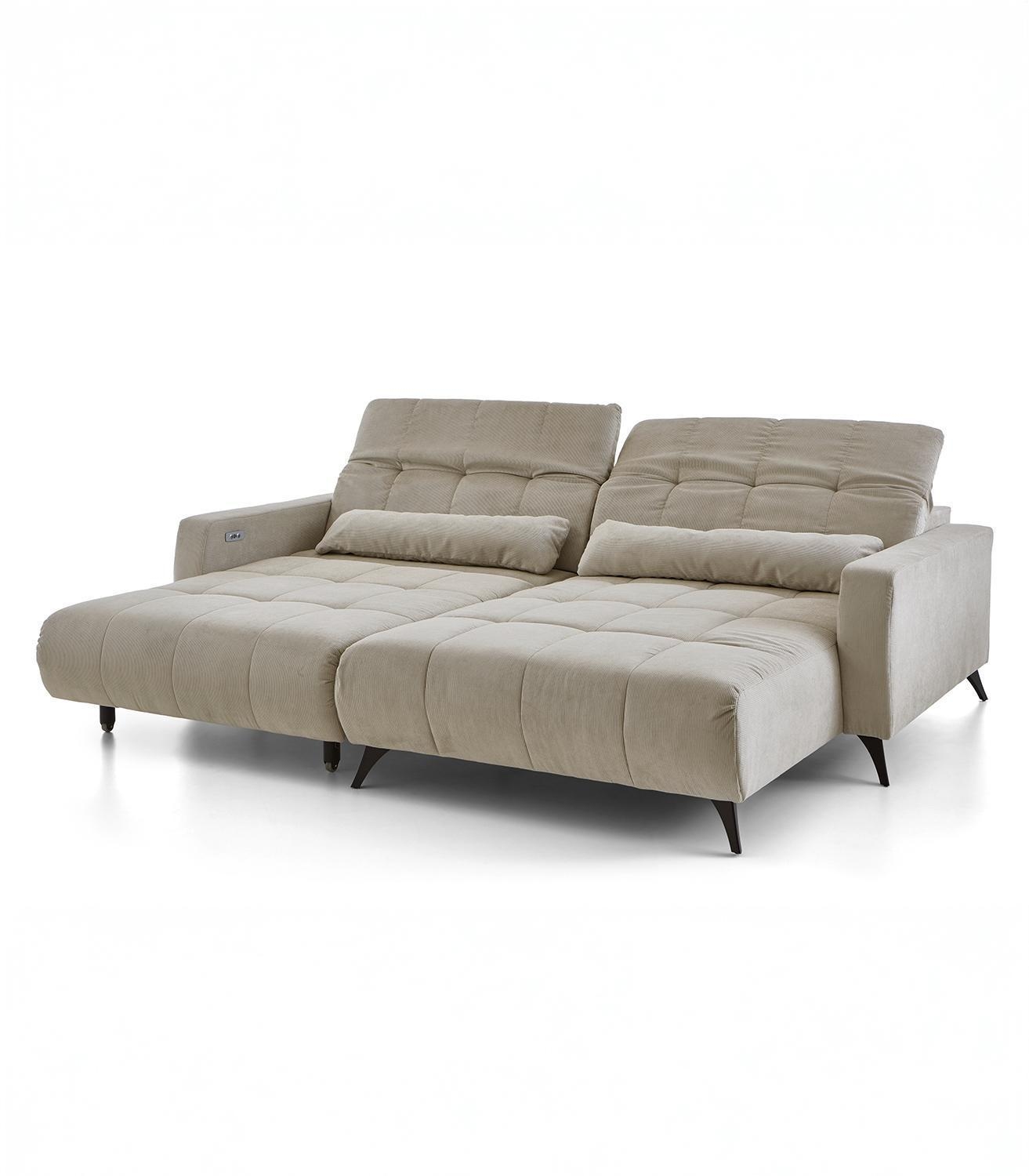 277 x 203 cm - Taupe - Feincord - elektr. Sitztiefenverstellung