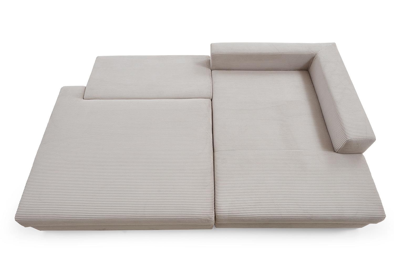 224 x 149 cm - Greige - Cord - mit Ausziehfunktion und Bettkasten