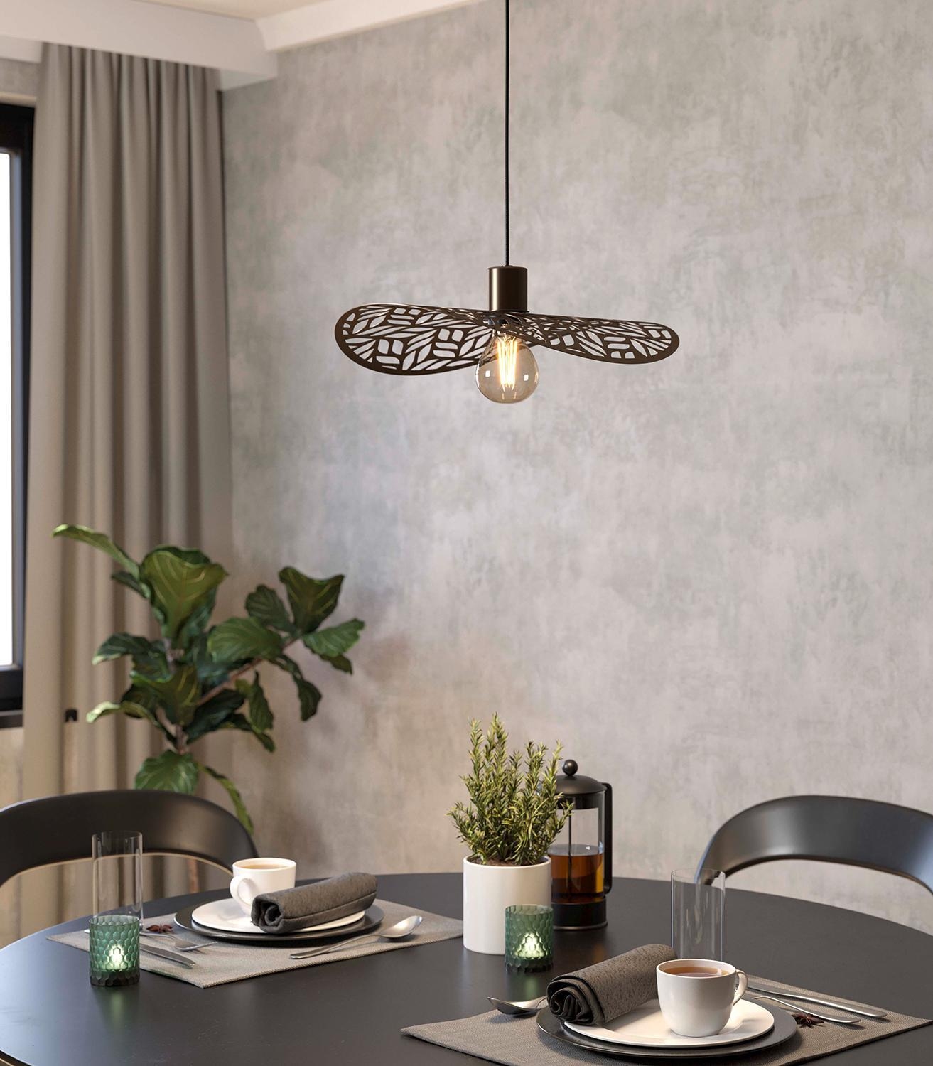 Bei dem Modell SWABY handelt es sich um eine Pendelleuchte der Marke EGLO. Die aus bronzefarbenem Metall gefertigte Leuchte weist einen Durchmesser von 40 cm und eine Gesamthöhe von 110 cm auf. Für den Betrieb wird ein einzelnes Leuchtmittel benötigt, welches nicht im Lieferumfang enthalten ist. Die Fassung ist für Leuchtmittel des Typs E27 ausgelegt. Das Leuchtmittel ist austauschbar und darf eine maximale Leistung von 40 Watt nicht überschreiten.