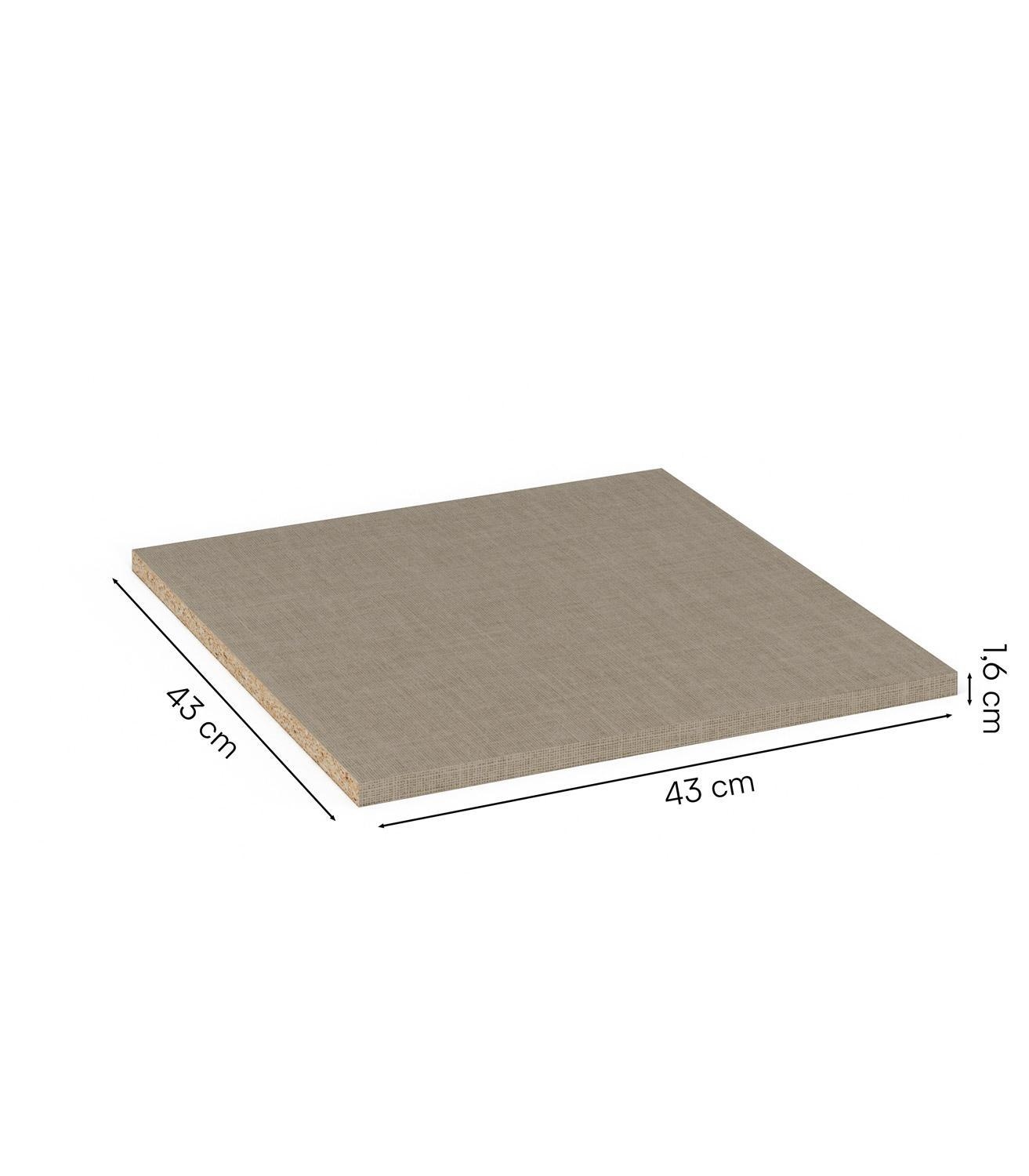 Die Oberfläche ist mit Texline Dekor überzogen. Dieses Material verleiht eine textilähnliche Optik und auch die Struktur erinnert an Stoff. Dank der neutralen, schlichten Farbe kombinieren Sie den Einlegeboden zu jedem beliebigen Schrank.