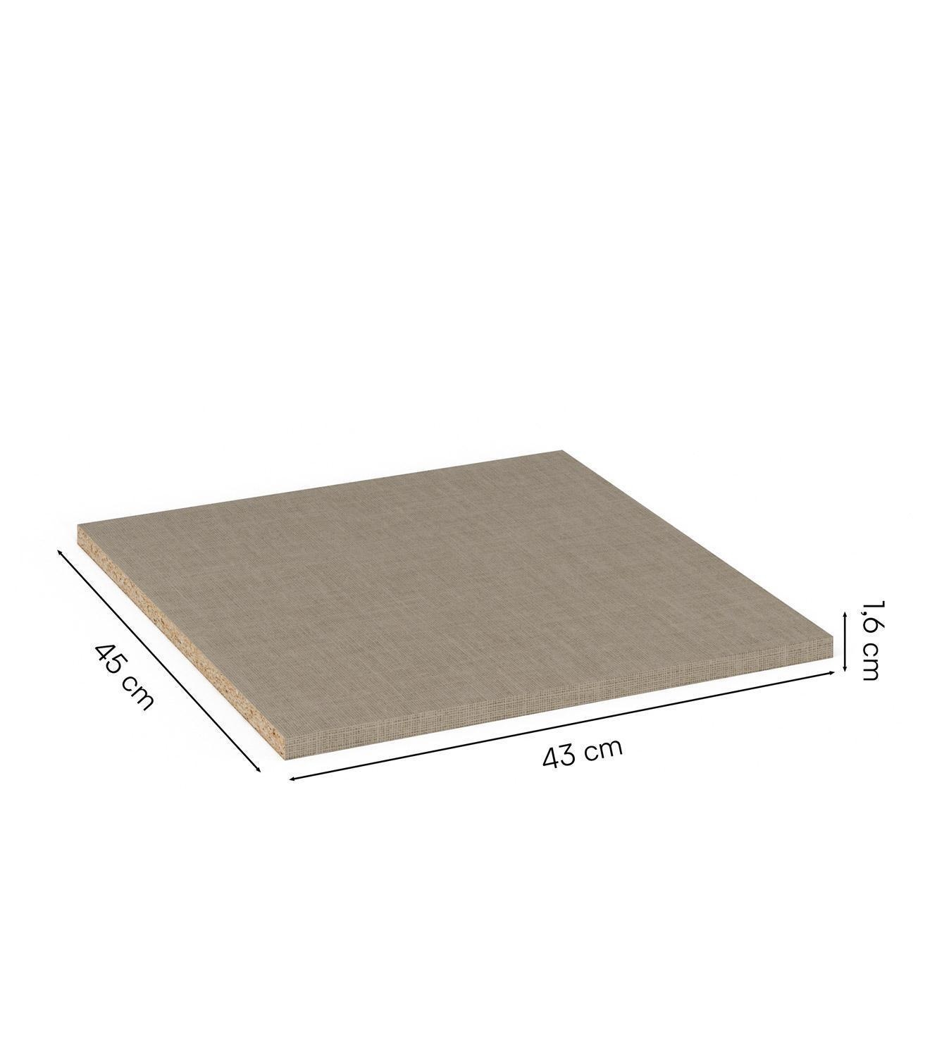 Die Oberfläche ist mit Texline Dekor überzogen. Dieses Material verleiht eine textilähnliche Optik und auch die Struktur erinnert an Stoff. Dank der neutralen, schlichten Farbe kombinieren Sie den Einlegeboden zu jedem beliebigen Schrank.