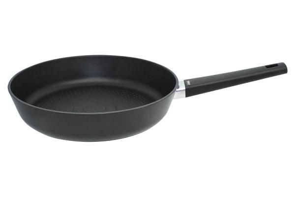 Die Bratpfanne NEW WAVE von ELO besteht aus geschmiedetem Aluminium in Schwarz und hat einen Durchmesser von 28 cm. Sie ist mit einer Basic-Antihaftbeschichtung ausgestattet, die das Anbraten erleichtert. Der Stielgriff besteht aus schwarzem Kunststoff und sorgt für eine sichere Handhabung. Die Pfanne ist zudem spülmaschinengeeignet, was die Reinigung erleichtert.