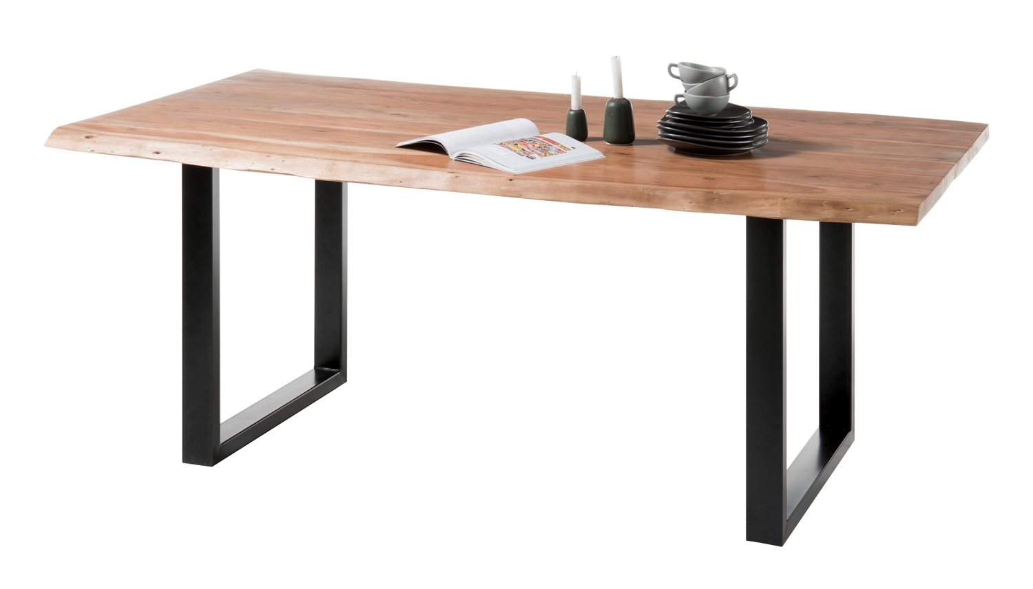 Akazie massiv - Metallgestell - 180 x 90 cm