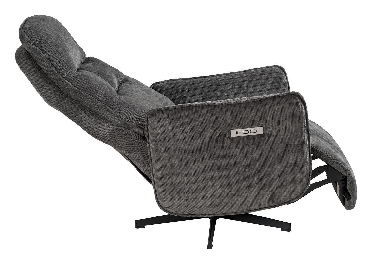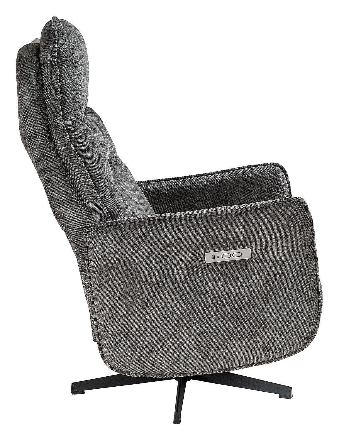 Der Fernsehsessel TRAUDL ist mit einem grauen Mikrofaserbezug ausgestattet und steht auf einem schwarzen Metallgestell. Dieser Relaxsessel verfügt über eine elektrische Fußteilverstellung sowie eine Relaxfunktion, die über seitlich angebrachte Tasten gesteuert werden. Zur Ausstattung gehören zudem eine manuell verstellbare Kopfstütze und ein integrierter USB-Anschluss. Die Konstruktion ist um 360 Grad drehbar. In der Breite misst dieser Sessel 73 cm, die Tiefe beträgt 82 cm und die Höhe beläuft sich auf 166 cm.