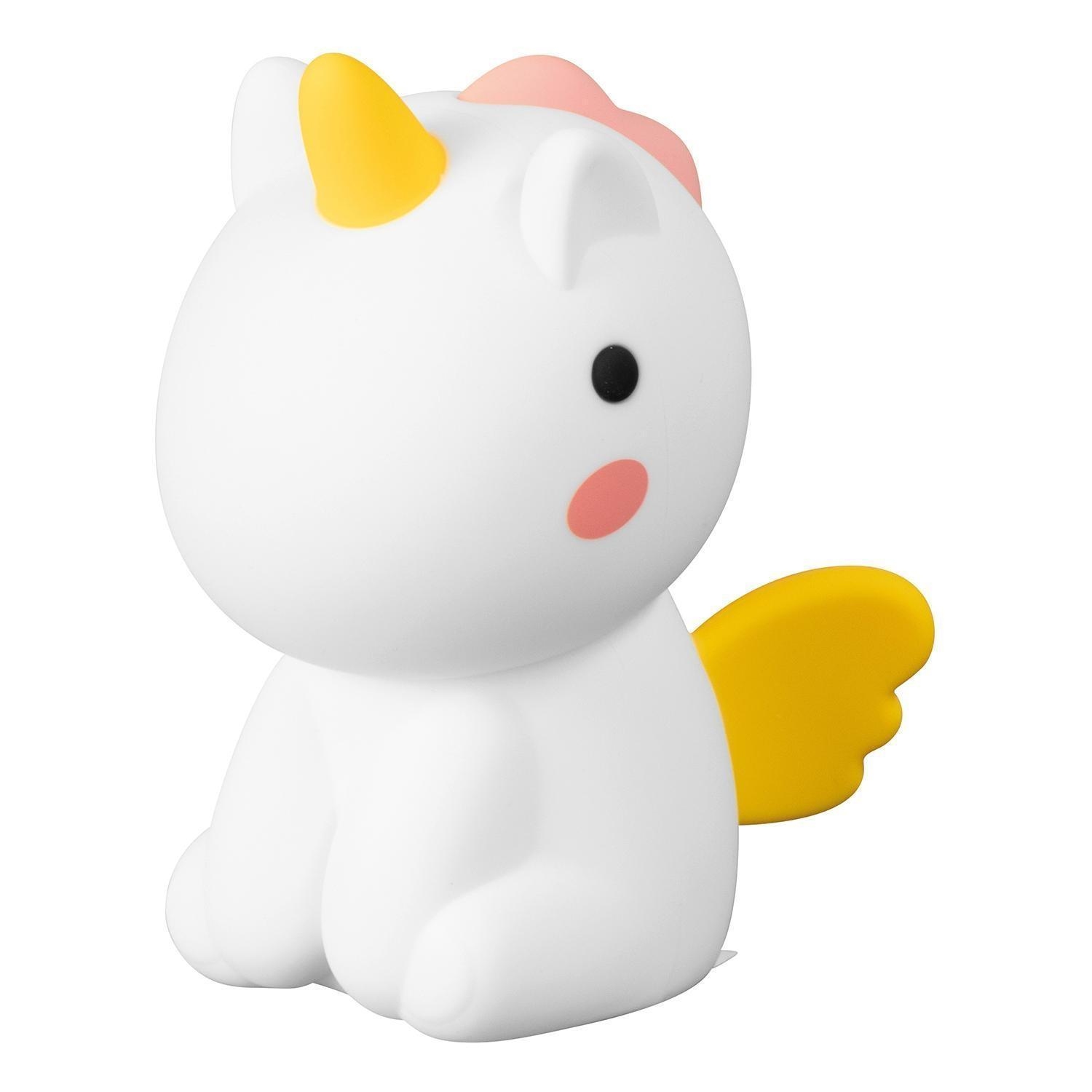 Das Akku LED-Nachtlicht EMILY der Marke FH Lighting besteht aus Silikon in Gelb und Weiß und ist in Einhornform gestaltet. Es verfügt über einen einstellbaren RGB-Farbwechsel sowie einen dreistufigen Touchdimmer. Das Nachtlicht wird über einen Akku mit USB-Ladekabel betrieben und ist über einen Schalter ein- und ausschaltbar. Die Maße betragen 8,5 cm in der Breite, 14 cm in der Höhe und 10,5 cm in der Tiefe. Eingesetzt ist ein LED-Leuchtmittel, das im Lieferumfang enthalten und nicht austauschbar ist. Dieses bietet eine Leistung von 0,7 Watt, eine Helligkeit von 60 Lumen sowie eine Farbtemperatur von 3000 Kelvin.