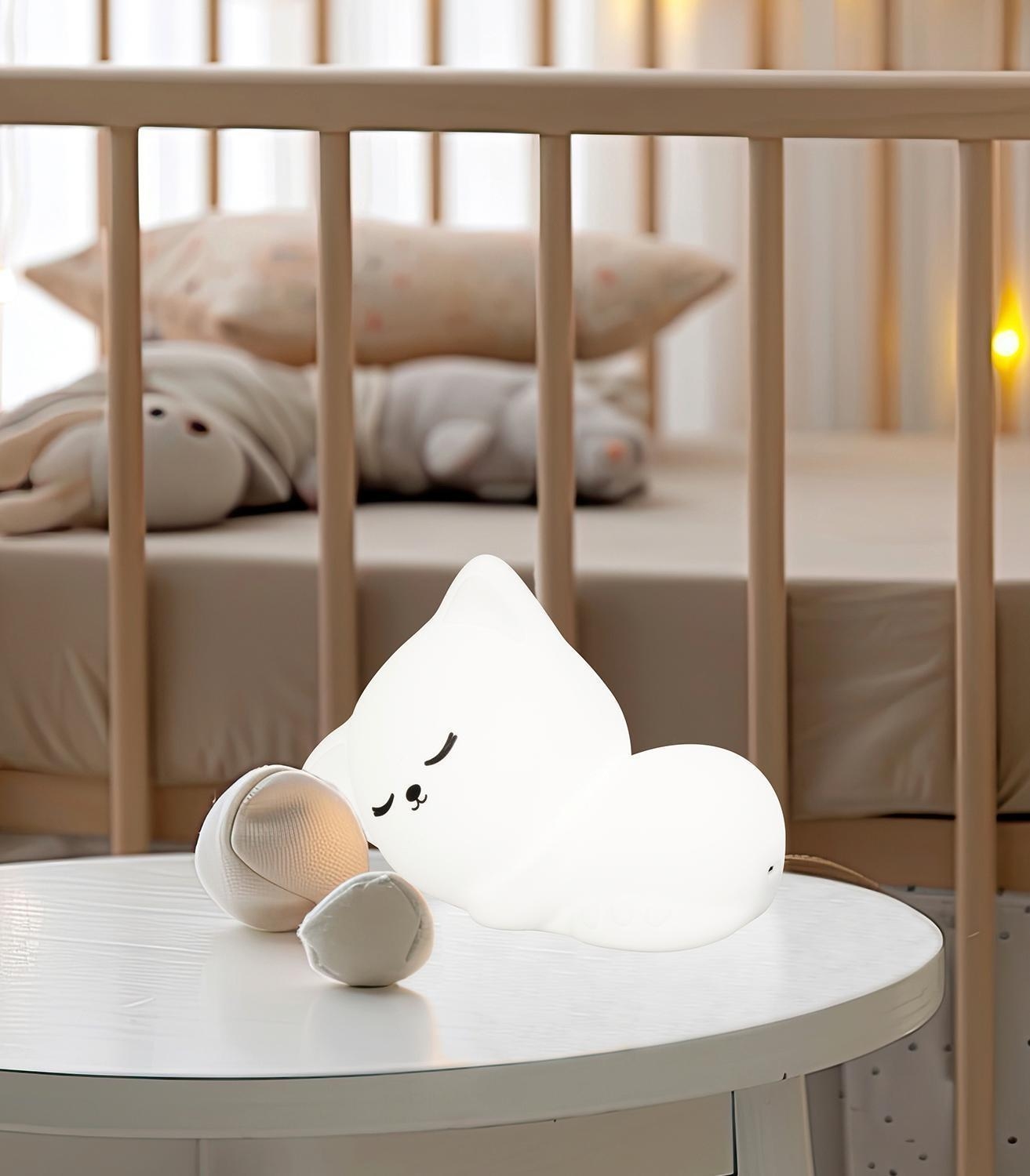 Das Akku LED-Nachtlicht MIA der Marke FH Lighting besteht aus Silikon in Weiß und ist in Katzenform gestaltet. Es verfügt über einen einstellbaren RGB-Farbwechsel sowie einen dreistufigen Touchdimmer. Das Nachtlicht wird über einen Akku mit USB-Ladekabel betrieben und ist über einen Schalter ein- und ausschaltbar. Die Maße betragen 14 cm in der Breite, 11 cm in der Höhe und 8 cm in der Tiefe. Eingesetzt ist ein LED-Leuchtmittel, das im Lieferumfang enthalten und nicht austauschbar ist. Dieses bietet eine Leistung von 0,3 Watt, eine Helligkeit von 24 Lumen sowie eine Farbtemperatur von 3000 Kelvin.
