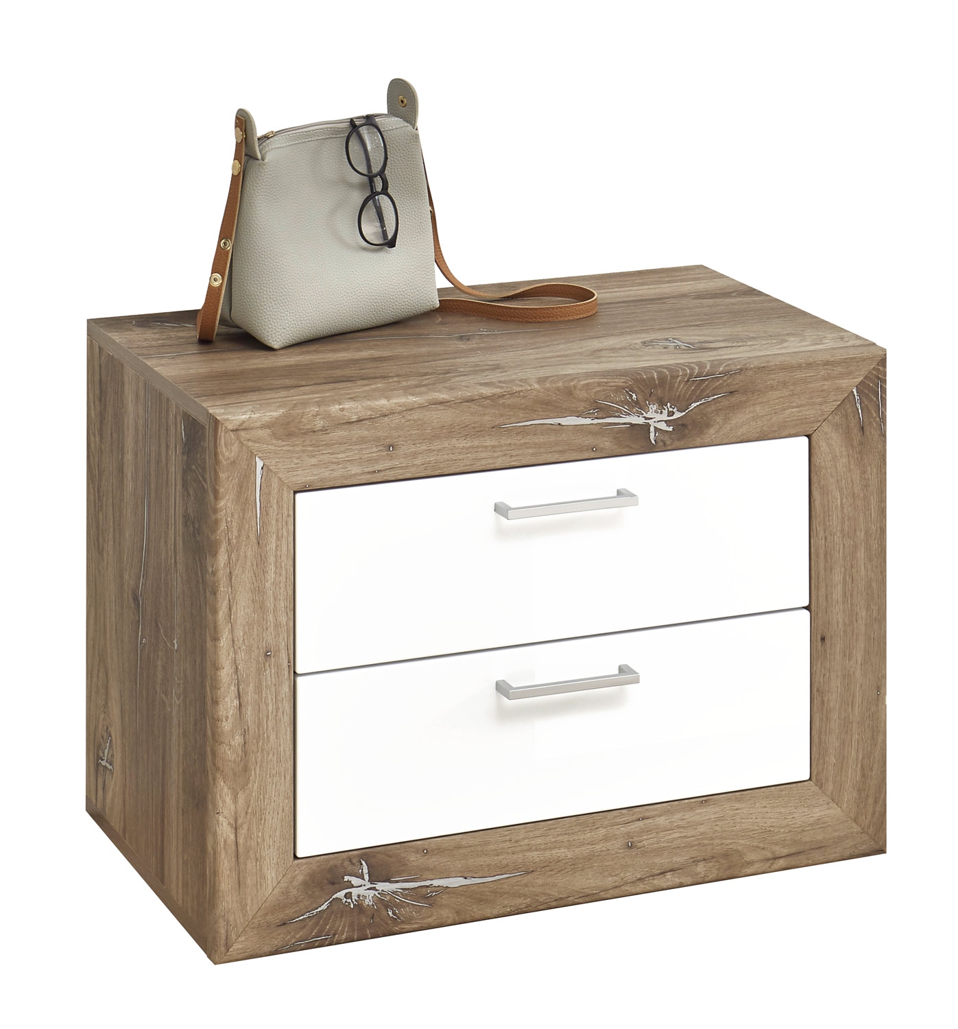 Flagstaff Eiche Dekor - Weiß Hochglanz - 70 x 40 cm - mit 2 Schubladen