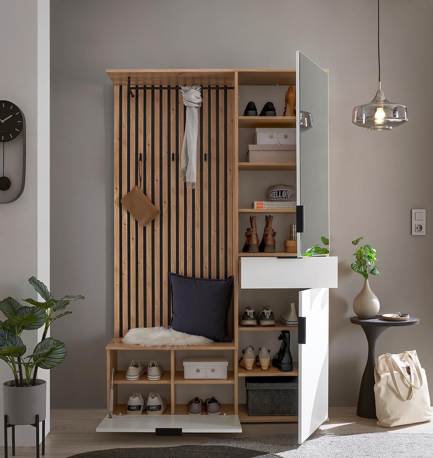 | Lieferumfang: | 3-teilige Garderobenkombination bestehend aus 1 Garderobenbank , 1 Garderobenschrank und 1 Garderobenpaneel |