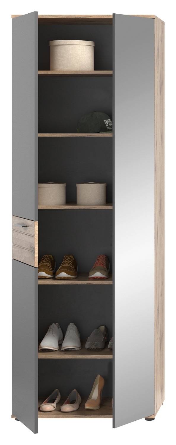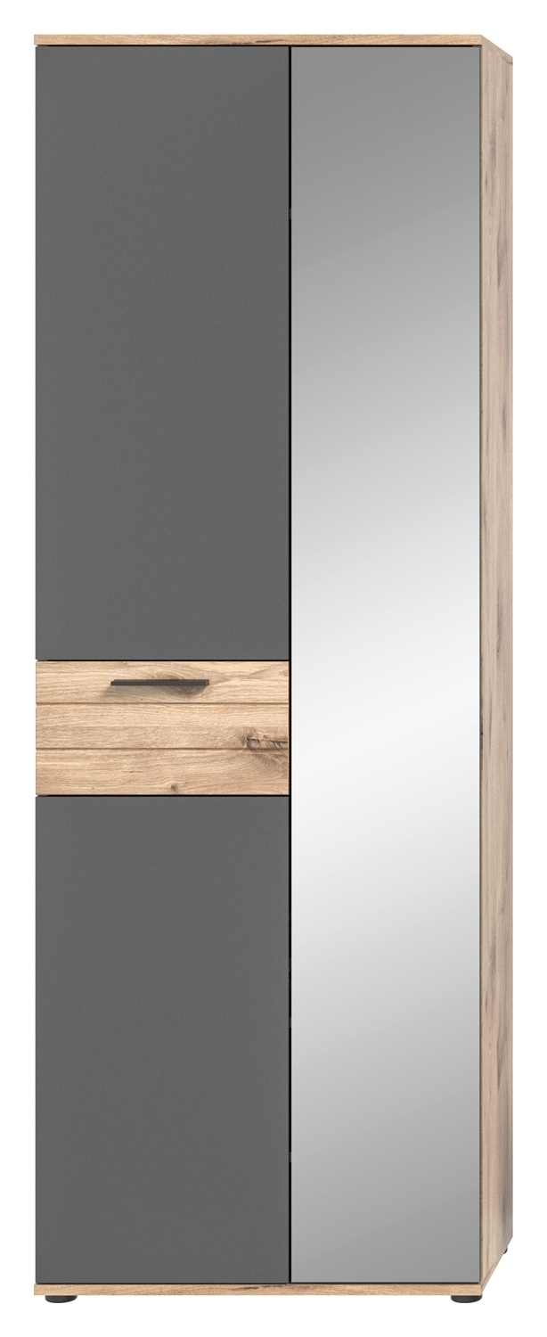 Nox Eiche Dekor - Basaltgrau - B 70 cm - 1 Tür - 1 Spiegeltür