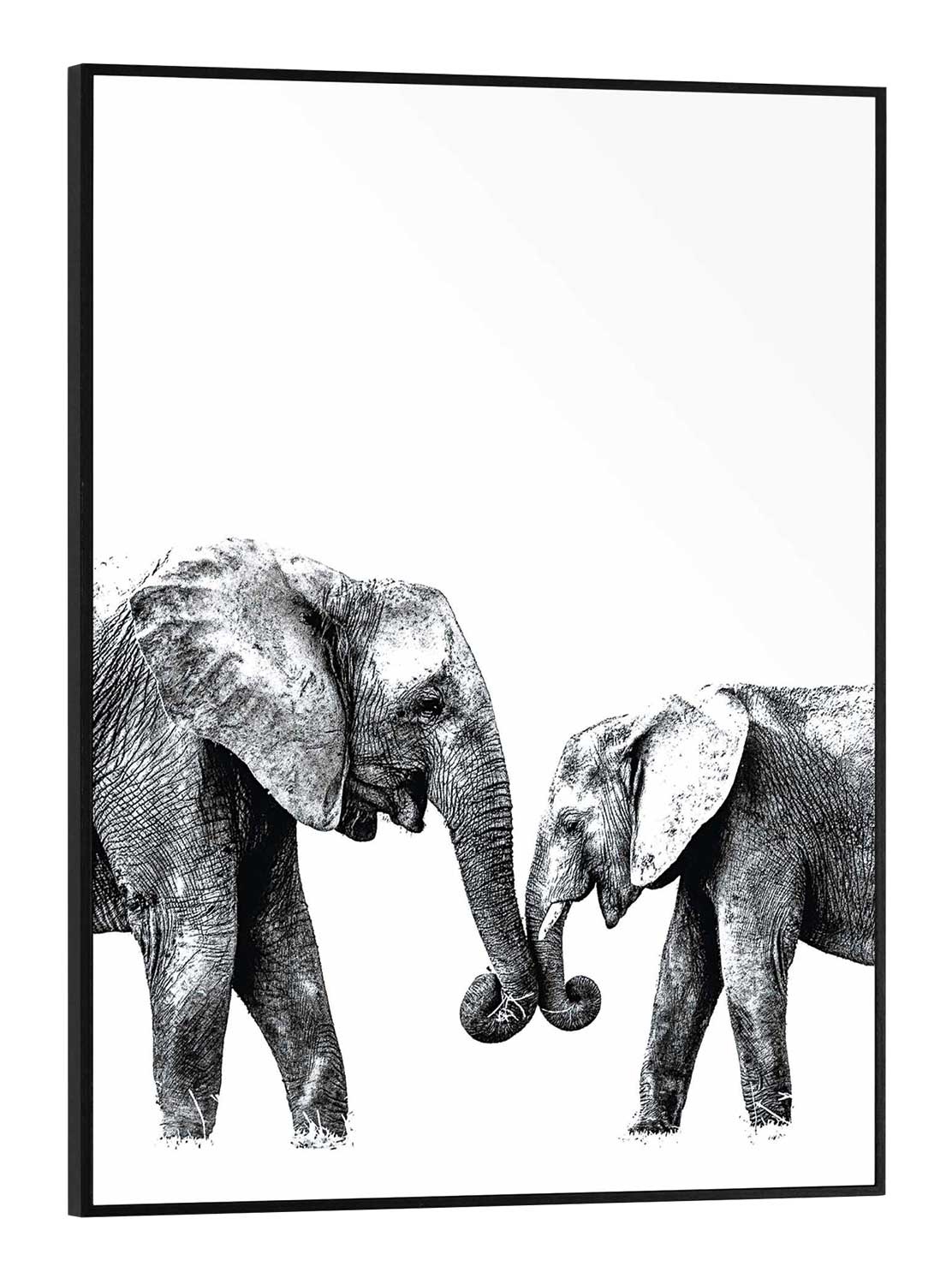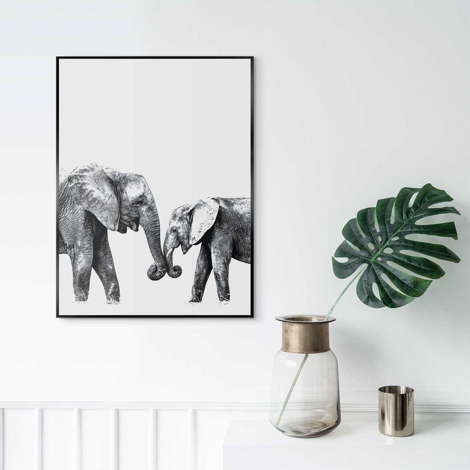Schwarz - Weiß - 30 x 40 cm - Elefantenliebe