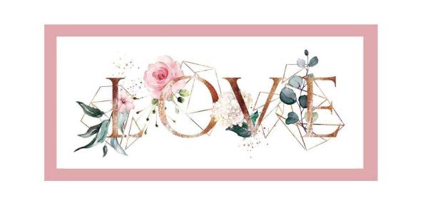 Rosa - Weiß - MDF - 49 x 23 cm - mit Schriftzug LOVE