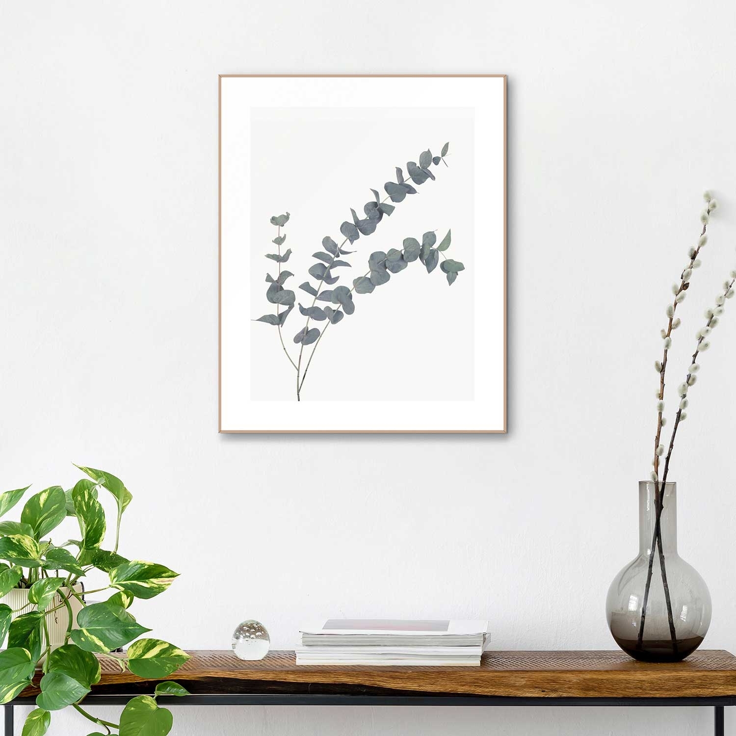 Weiß - Grau - 40 x 50 cm - mit Eucalyptus-Motiv