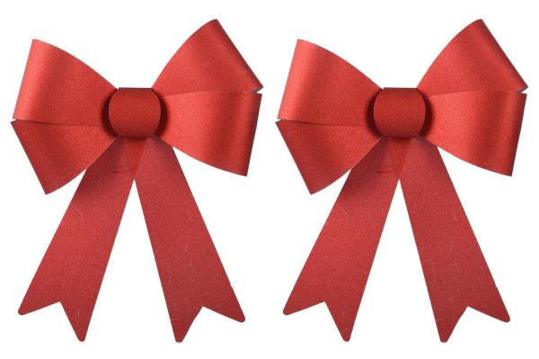 Das 2er Set Geschenk-Schleifen VENEZIA in Rot setzt funkelnde Akzente auf jedem Geschenk. Jede Schleife misst 21 cm in der Breite und 29 cm in der Höhe und ist komplett mit Glitzer versehen, wodurch sie besonders festlich wirkt. Gefertigt aus robustem PVC-Kunststoff, lassen sich die Schleifen einfach platzieren und sorgen im Handumdrehen für eine stilvolle und strahlende Geschenkverpackung.