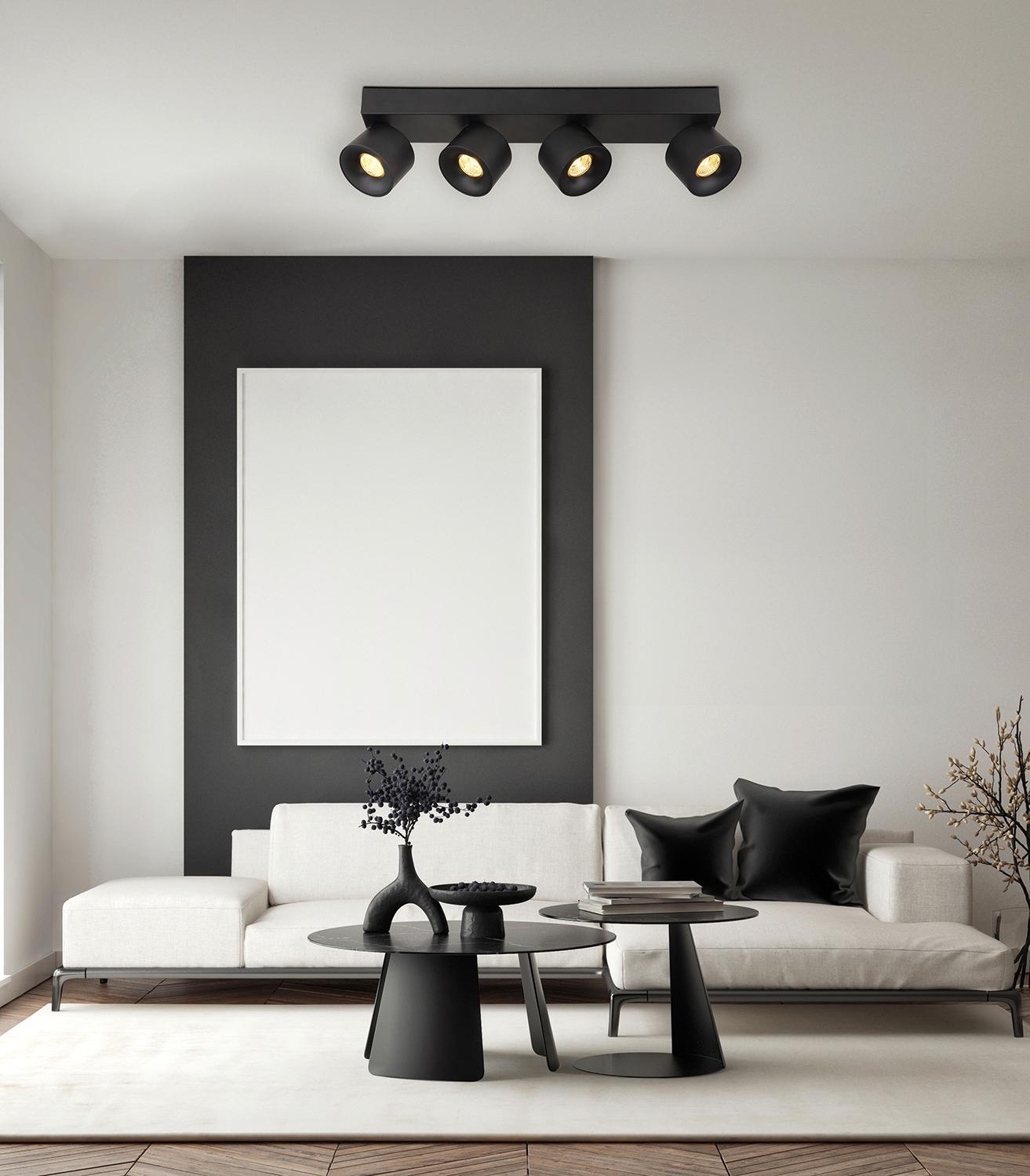 Der LED-Strahler RAE der Marke Globo Lighting besteht aus schwarzem Metall und ist mit Lampenschirmen aus Acryl und Aluminium ausgestattet. Die Leuchte verfügt über vier verstellbare Lampenschirme, die eine flexible Ausrichtung des Lichts ermöglichen. Mit einer Breite von 45,5 cm, einer Höhe von 12 cm und einer Tiefe von 7,2 cm bietet der Strahler kompakte Abmessungen für verschiedene Einsatzbereiche. Die integrierten LED-Leuchtmittel sind im Lieferumfang enthalten und nicht austauschbar. Bei einer Leistung von 24 Watt erzeugt der Strahler eine Helligkeit von 1920 Lumen und eine warmweiße Lichtfarbe mit 3000 Kelvin.
