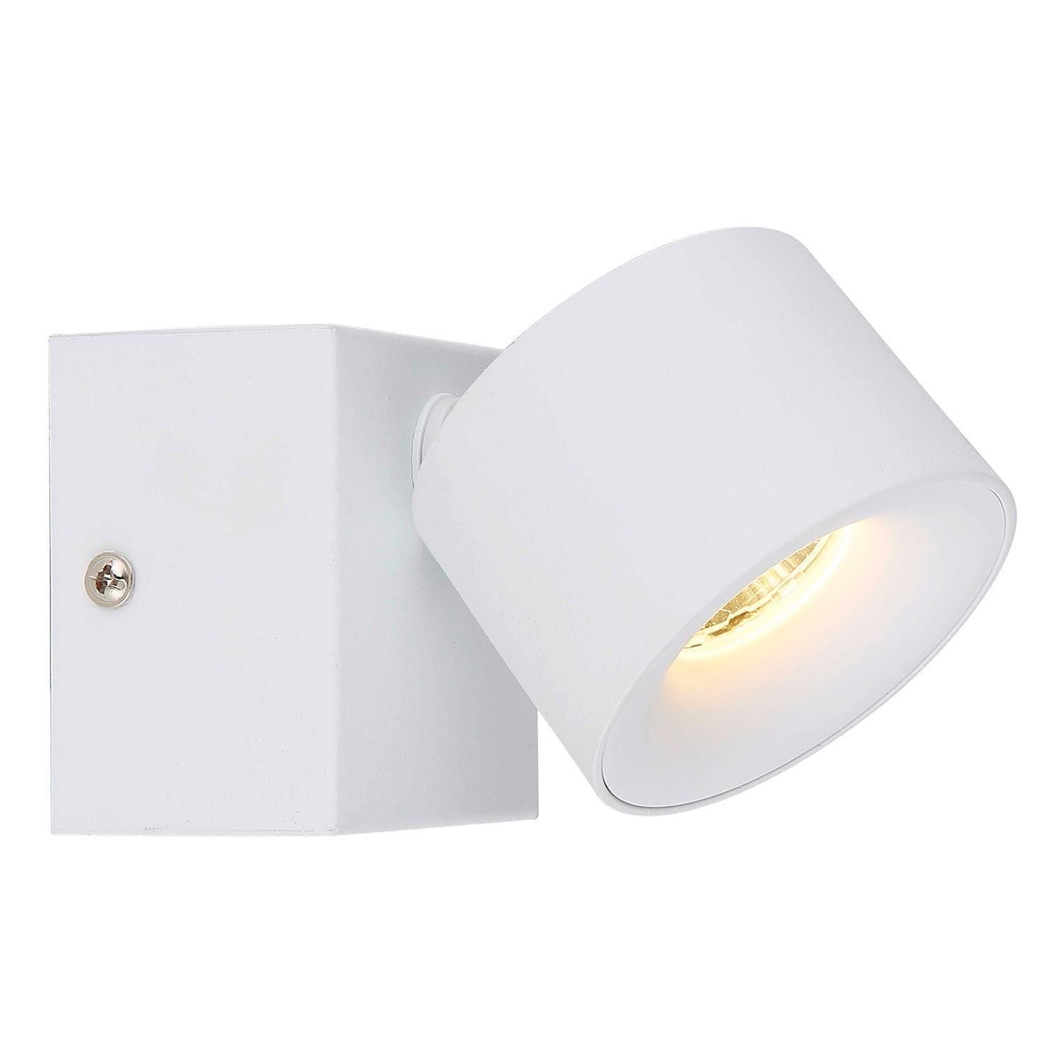 Die LED-Wandleuchte RAE der Marke Globo Lighting besteht aus weißem Metall und ist mit einem Lampenschirm aus Acryl und Aluminium ausgestattet. Die Leuchte verfügt über einen verstellbaren Lampenschirm, der eine flexible Ausrichtung des Lichts ermöglicht. Mit einer Breite von 7,2 cm, einer Höhe von 12 cm und einer Tiefe von 7,2 cm bietet der Strahler kompakte Abmessungen für verschiedene Einsatzbereiche. Das integrierte LED-Leuchtmittel ist im Lieferumfang enthalten und nicht austauschbar. Bei einer Leistung von 6 Watt erzeugt der Strahler eine Helligkeit von 480 Lumen und eine warmweiße Lichtfarbe mit 3000 Kelvin.