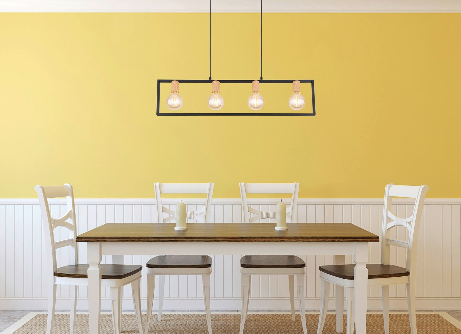 Braun - Schwarz - Holz - Metall - 90 x 150 cm - 4-flammig