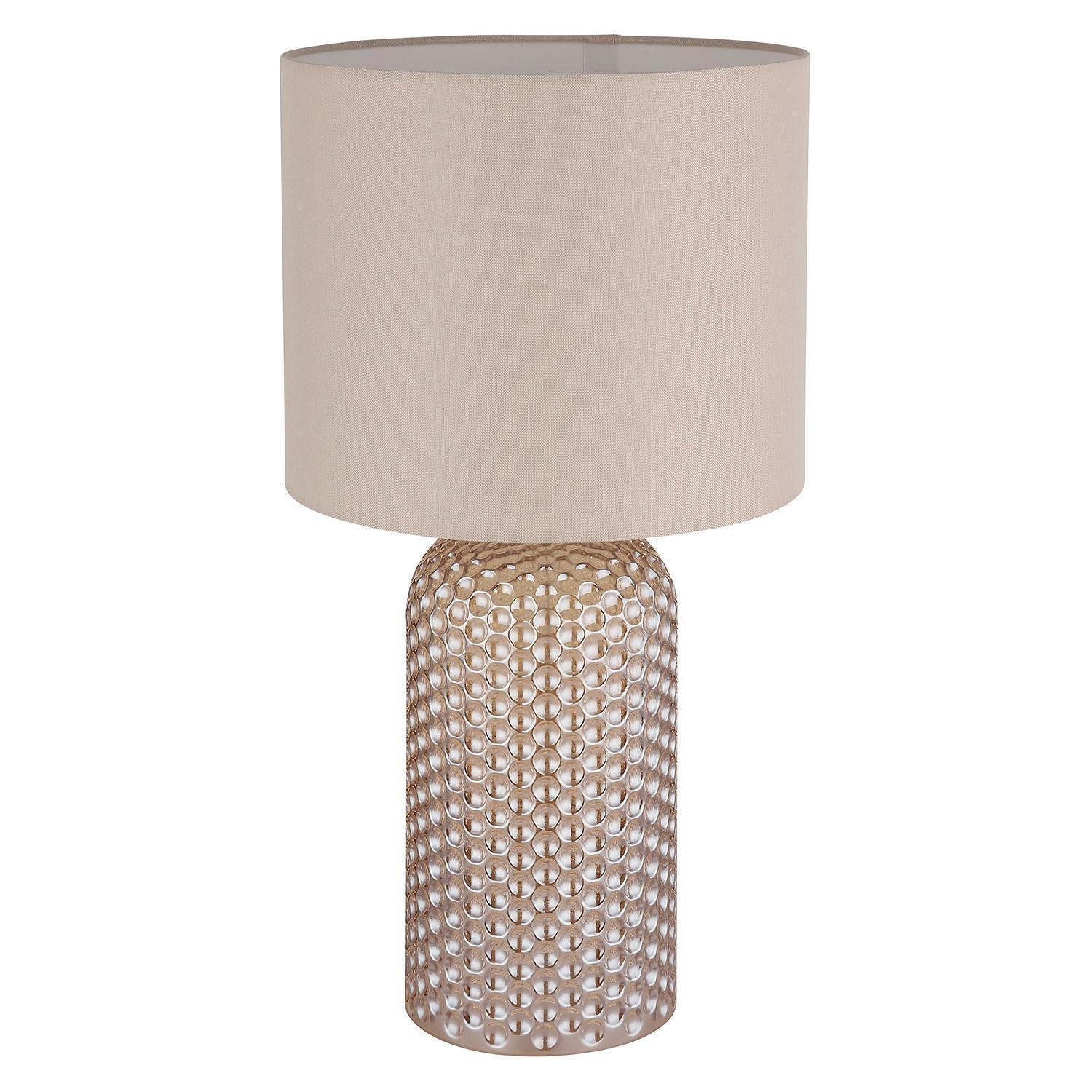 Die Tischlampe SOFIA von Globo Lighting besteht aus einem champagnerfarbenen Glasfuß und einem Textillampenschirm in der gleichen Farbe. Sie hat einen Durchmesser von 26,5 cm und eine Höhe von 50 cm. Die Lampe ist für ein Leuchtmittel mit E27-Fassung geeignet, das eine maximale Leistung von 60 Watt haben darf. Ein Leuchtmittel ist nicht im Lieferumfang enthalten, jedoch austauschbar. Mit ihrem Design bietet die Tischlampe eine dekorative und praktische Beleuchtungsmöglichkeit für verschiedene Räume.