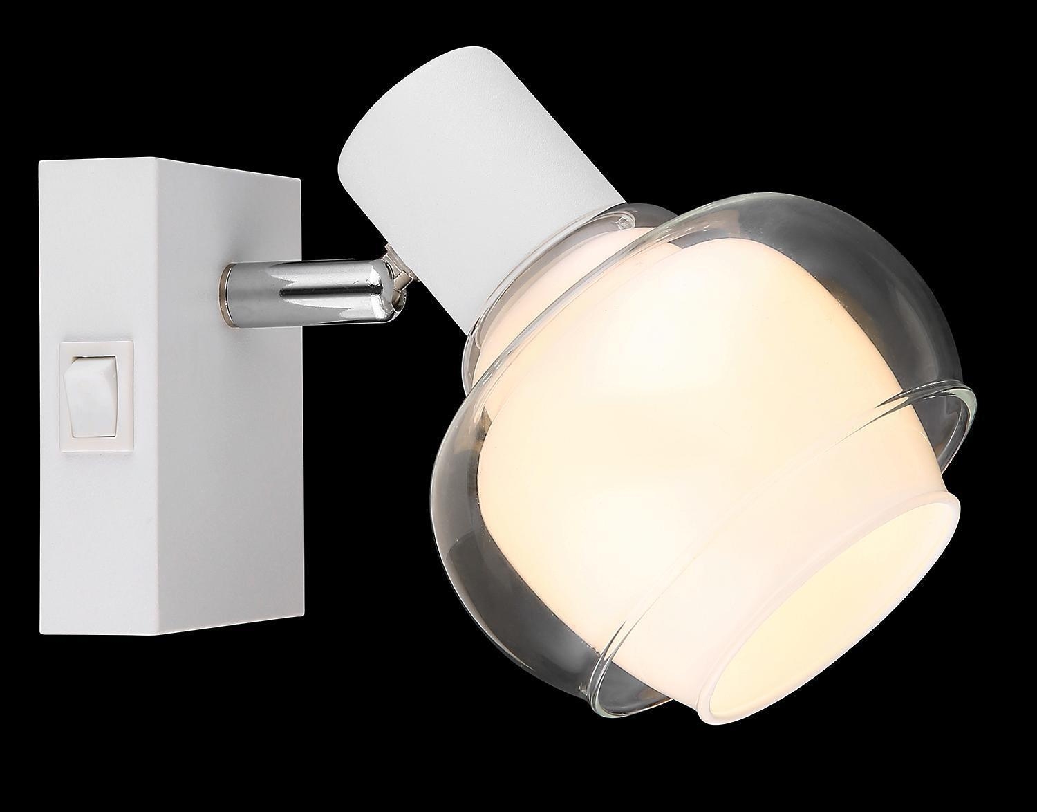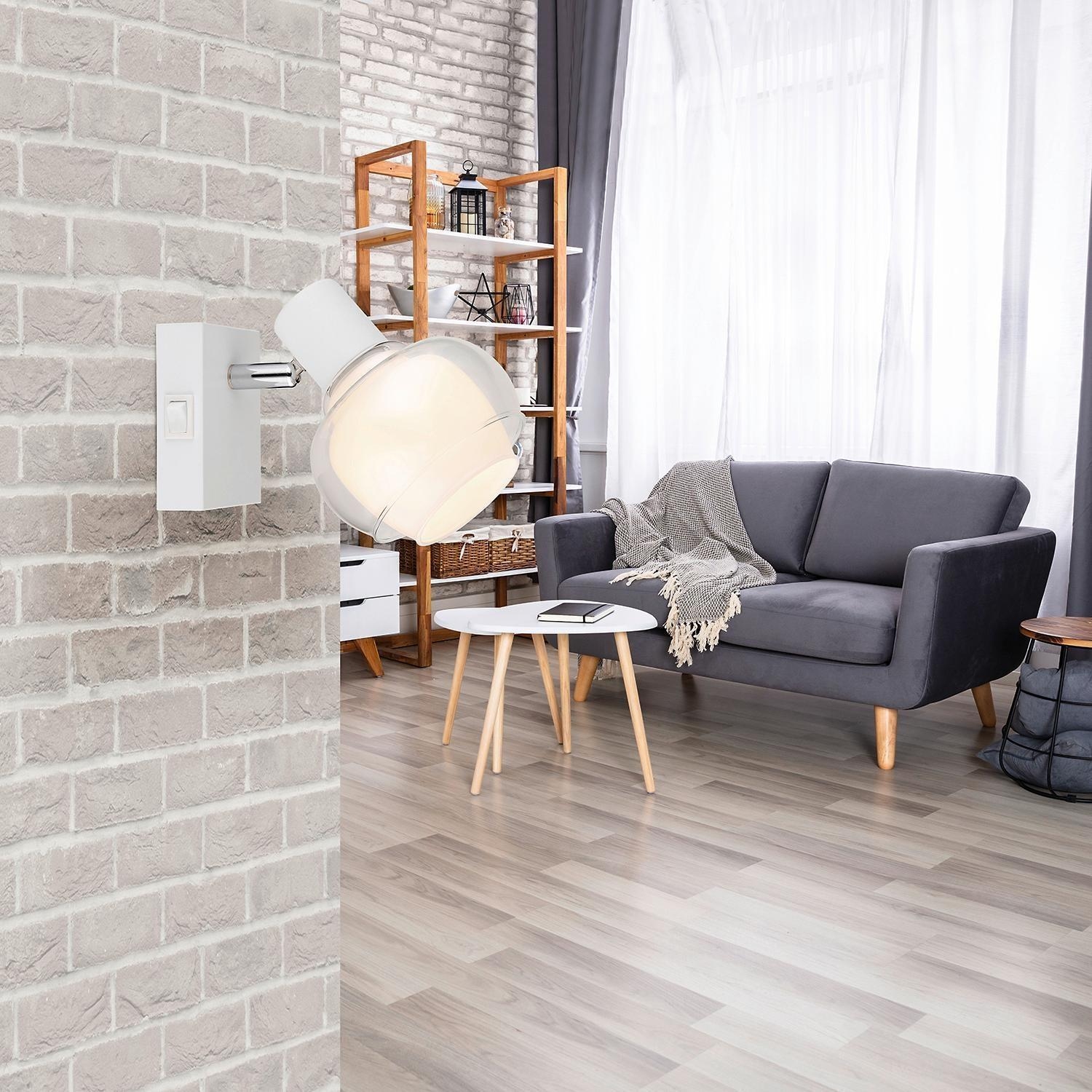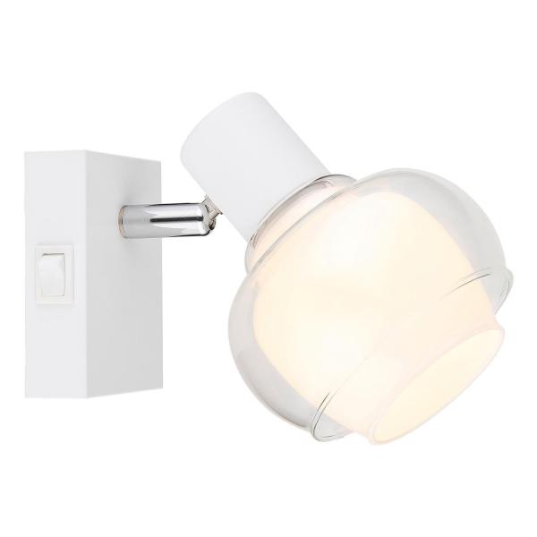 Die Wandleuchte TOKKI der Marke Globo Lighting verfügt über eine Wandhalterung aus weißem Metall sowie einen transparenten Lampenschirm aus Glas. Die chromfarbene Absetzung ergänzt das Design. Die Maße betragen 10,5 cm in der Breite, 12,5 cm in der Höhe und 13,5 cm in der Tiefe. Die Wandlampe ist für ein E14-Leuchtmittel geeignet, das nicht im Lieferumfang enthalten ist. Das Leuchtmittel ist austauschbar und kann eine maximale Leistung von bis zu 40 Watt haben.