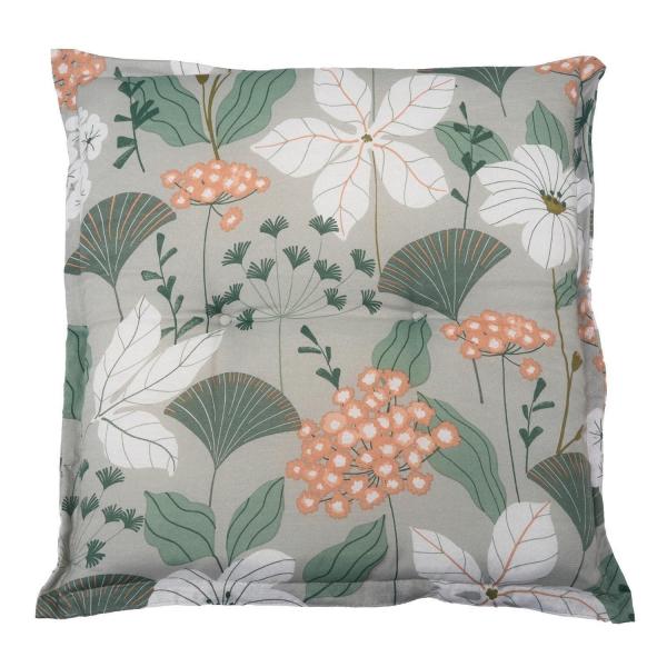 Die Hockerauflage XIMEN von GO-DE überzeugt mit hohem Sitzkomfort und einem stilvollen Blätter- und Blumenmuster in Grün, Weiß und Pfirsichfarben. Mit einer Größe von 50 x 50 cm passt sie ideal auf verschiedene Hocker. Das pflegeleichte Material aus einer Baumwoll-Polyester-Mischung sorgt für Langlebigkeit. Made in Germany.