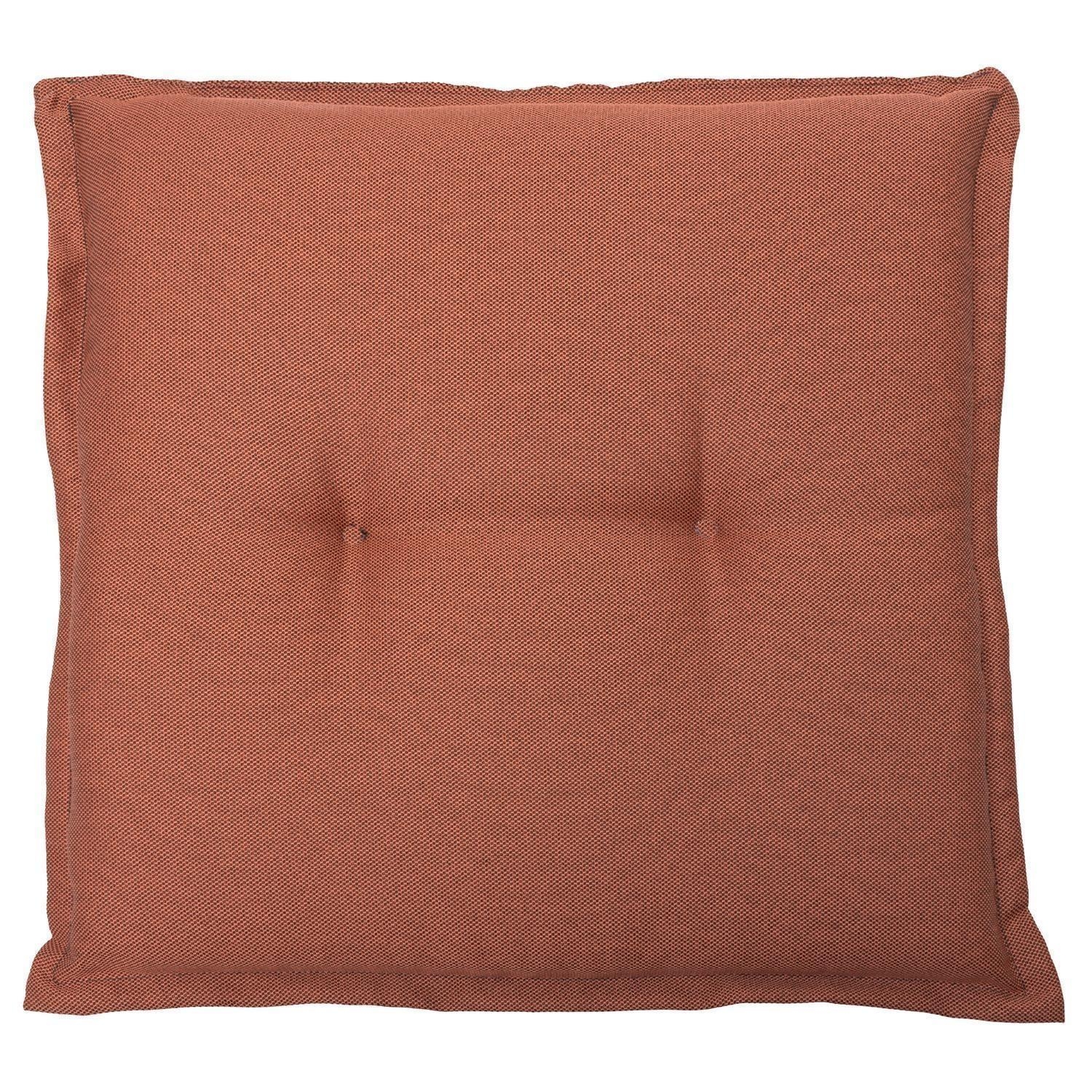 Das Sitzkissen SALU der Marke GO-DE ist aus Polyester in Rostbraun ohne Musterung gefertigt. Das Kissen hat einen Stehsaum. Die Länge beträgt 50 cm, die Breite 50 cm und die Höhe 7 cm.