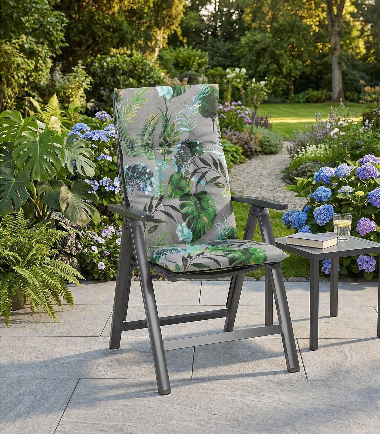 - Gartenstuhlauflage in grau, blau und grün