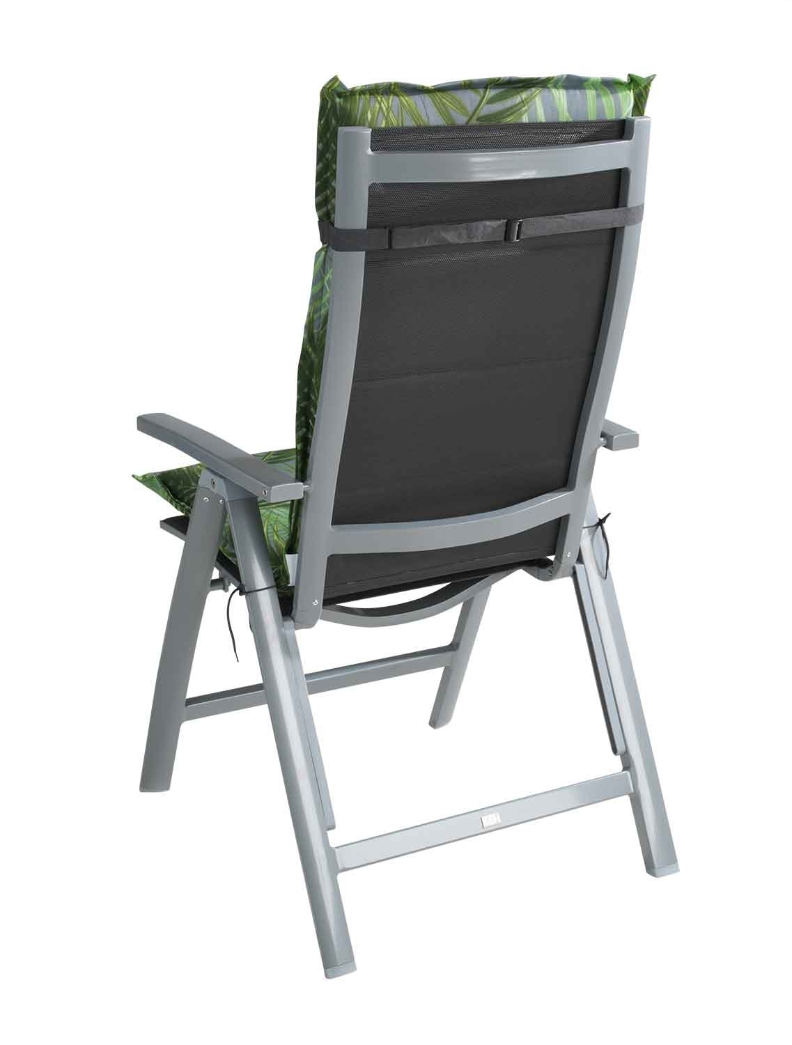 | Lieferumfang: | 1 Gartenstuhlauflage für Hochlehnstühle mit verstellbarem Gurtband und seitlichen Bindekordeln |
