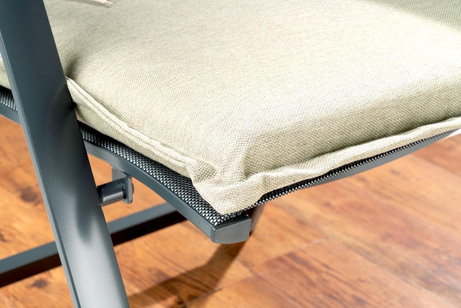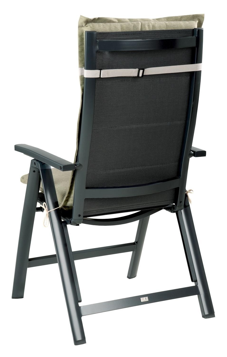 | Lieferumfang: | 1 Gartenstuhlauflage für Hochlehnstühle mit verstellbarem Gurtband und seitlichen Bindekordeln |