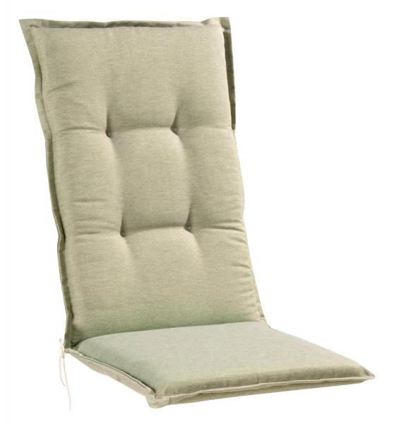 Die Stuhlauflage Hochlehner LENISA der Marke GO-DE ist eine Gartenstuhlauflage in Grün, unifarben und ohne Musterung. Sie ist geeignet für Hochlehner und ausgestattet mit einem verstellbaren Gurtband sowie seitlichen Bindekordeln. Die Maße betragen 120 cm in der Länge, 50 cm in der Breite und 7 cm in der Höhe. Die Materialzusammensetzung besteht aus 100 % Polyester, die Füllung aus Polyester-Vlies. Die Polsterauflage wird in Deutschland hergestellt.