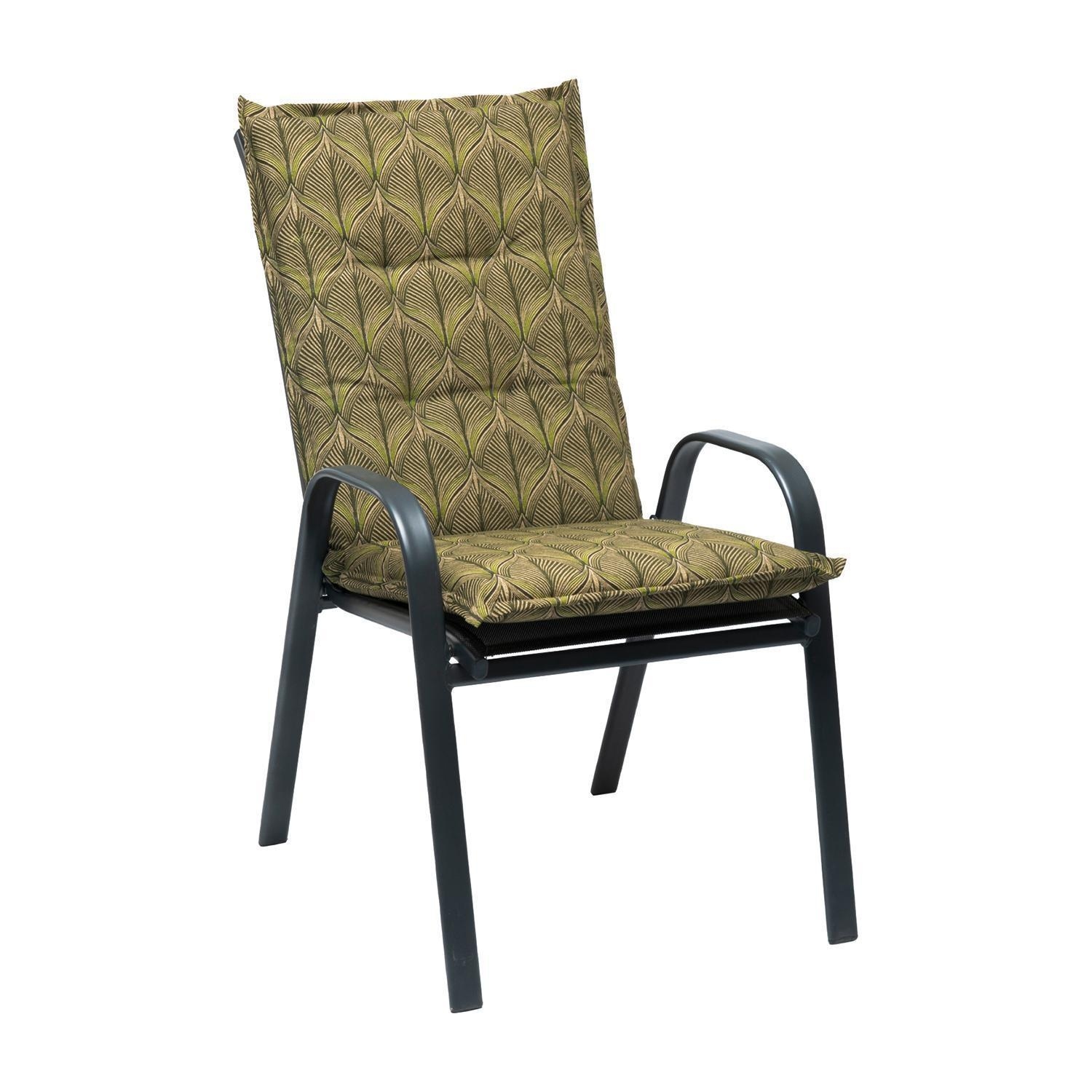Die Gartenstuhlauflage BABBLES von GO-DE verleiht Mittellehner-Stühlen eine stilvolle und komfortable Polsterung. Mit einer Größe von 50 x 108 cm sorgt sie für angenehmen Sitzkomfort. Das Design mit Blättermotiven in Grün setzt frische Akzente. Gefertigt aus einer pflegeleichten Baumwoll-Polyester-Mischung, überzeugt sie durch Langlebigkeit. Made in Germany.