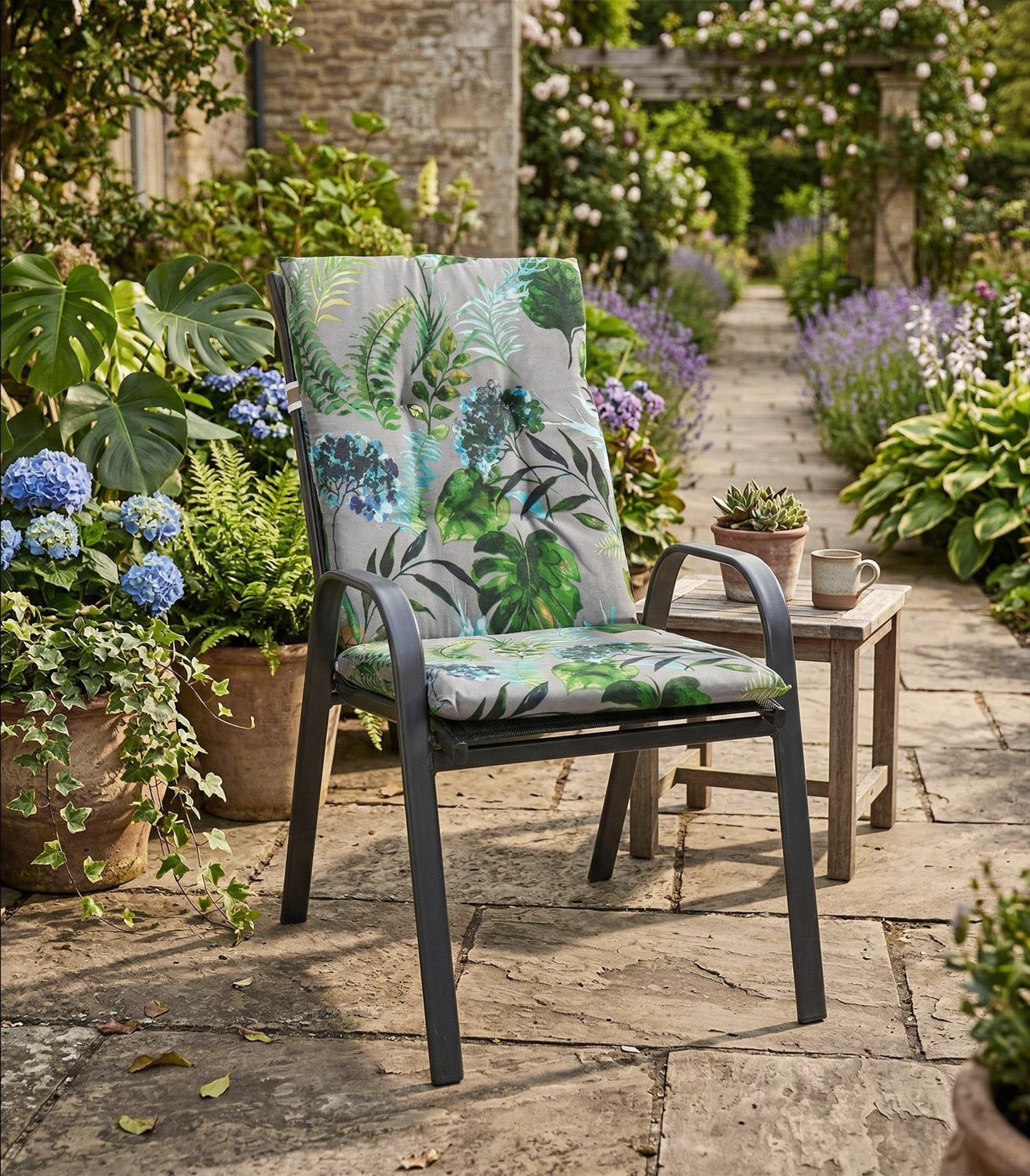 | Lieferumfang: | 1 Gartenstuhlauflage für Mittellehnstühle mit praktischem Gummiband an der Rückenlehne |