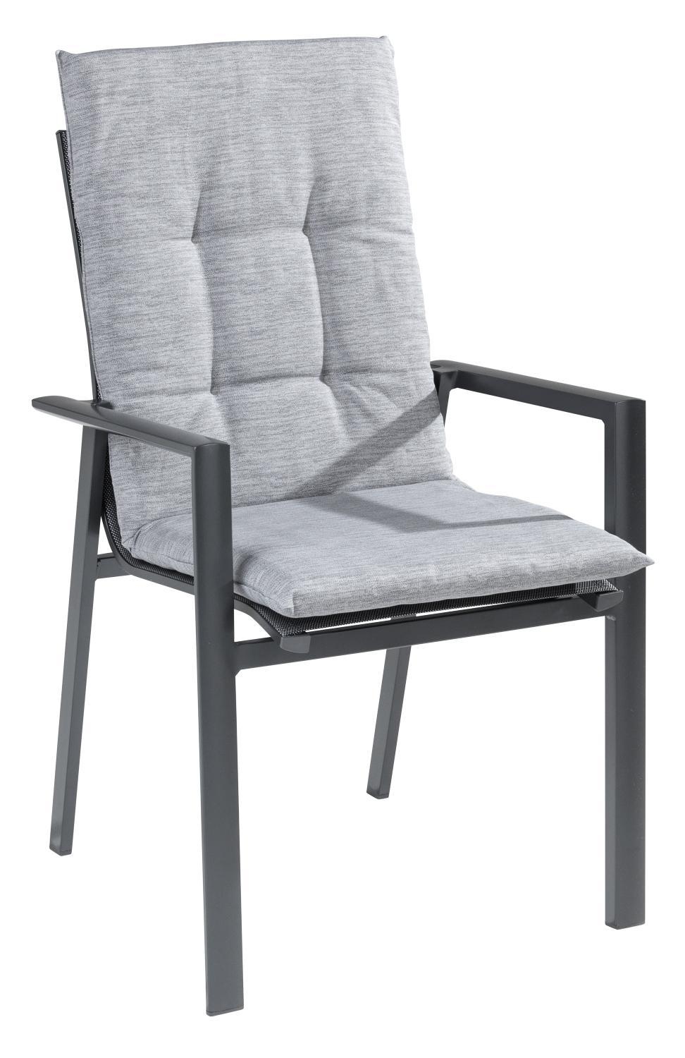 Die Gartenstuhlauflage MARION von GO-DE in Hellgrau sorgt für zusätzlichen Sitzkomfort und ist ideal für Mittellehner-Stühle. Mit einer Größe von 48 x 108 cm und einer weichen Polsterung bietet sie bequemes Sitzen. Ein praktisches Gurtband sorgt für sicheren Halt. Die Auflage besteht aus einer pflegeleichten Baumwoll-Polyester-Mischung und kann per Hand gewaschen werden. Made in Germany.