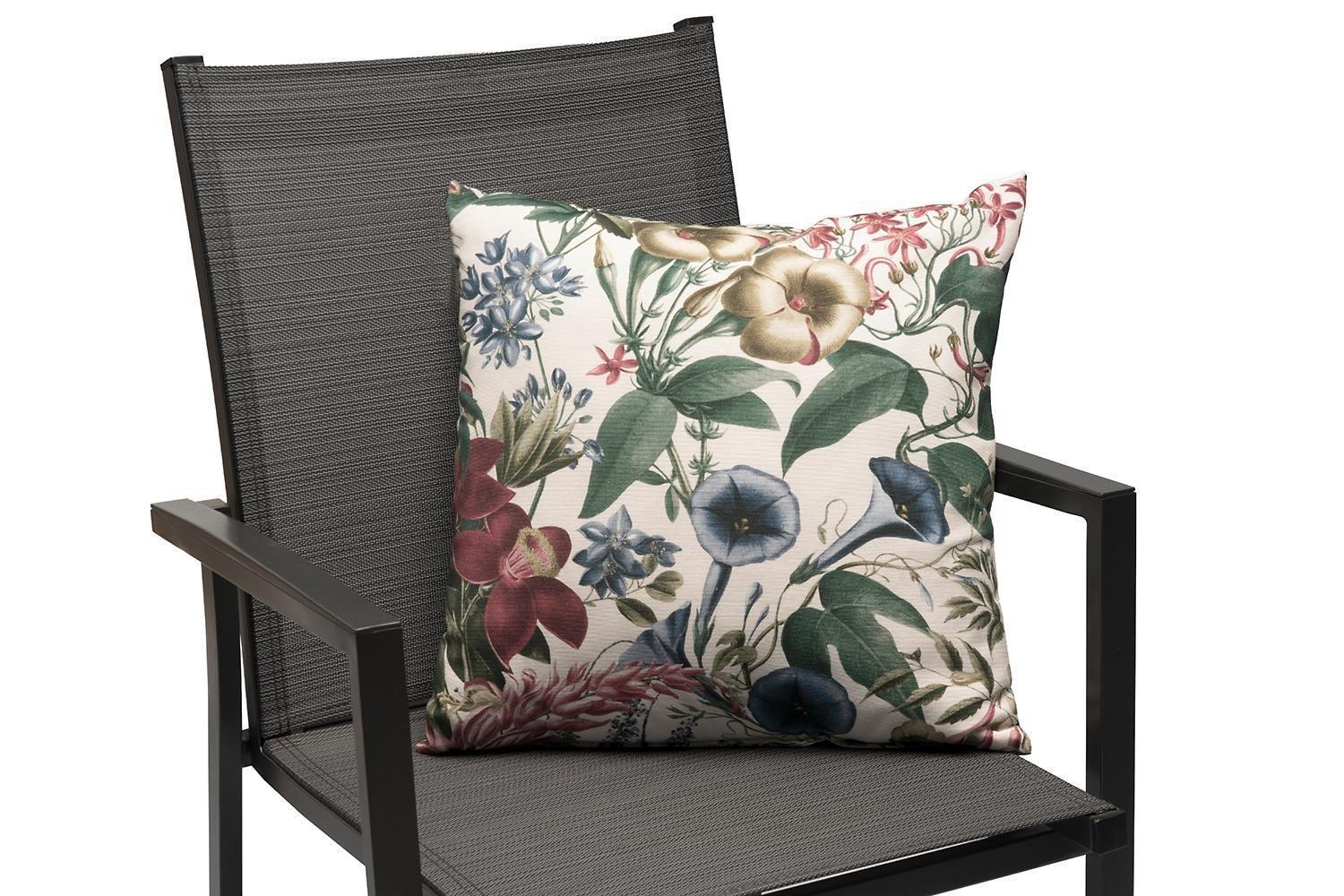 Das Zierkissen XONA der Marke GO-DE ist ein mehrfarbiges Kissen mit Blumenmuster. Es hat eine Größe von 48 x 48 cm und besteht aus einer Mischung aus Baumwolle und Polyester. Das Kissen ist für den Innen- und Außenbereich geeignet. Hergestellt in Deutschland.