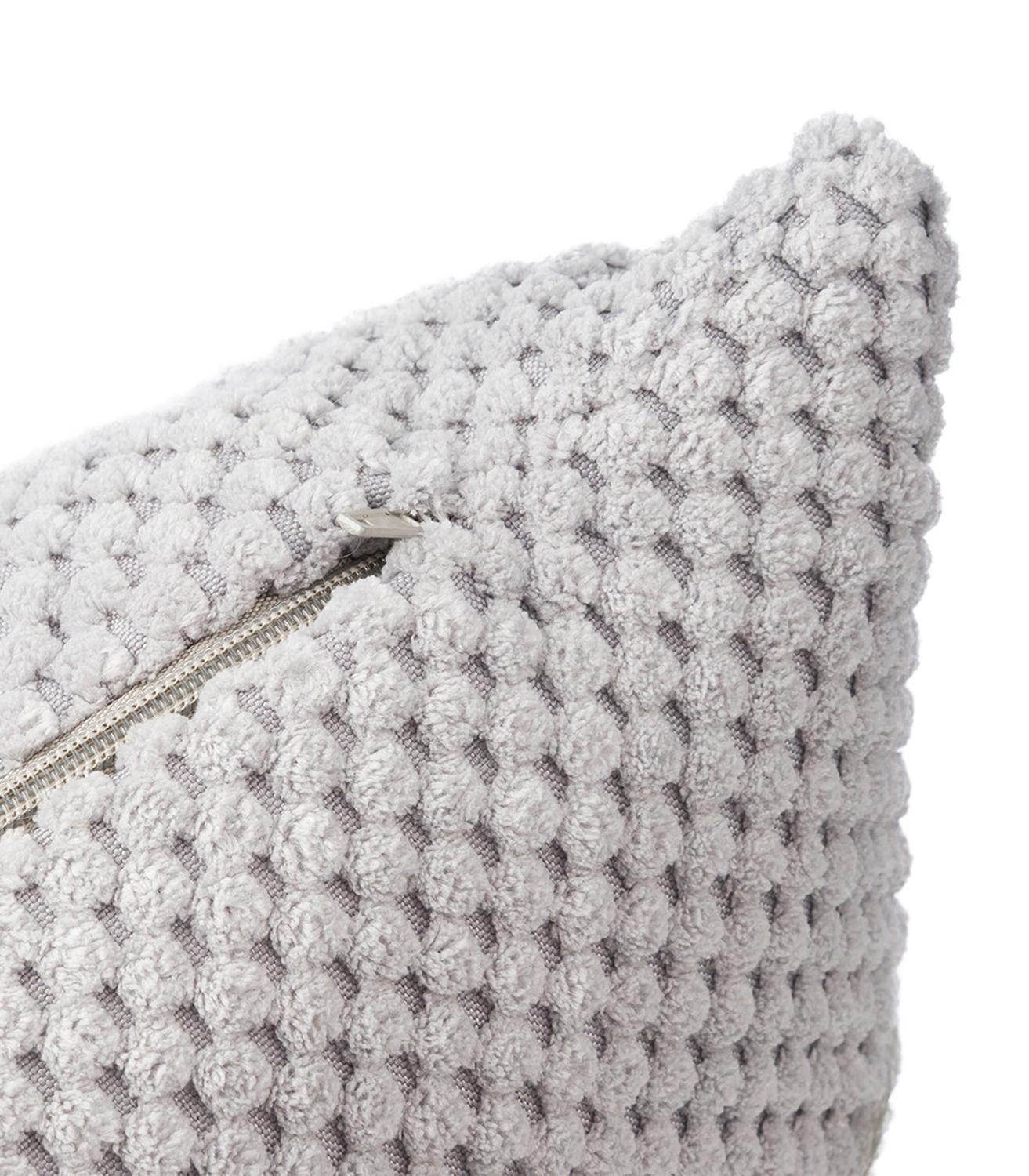 Dieses Kissen SVELA in Silbergrau von Gözze setzt mit seiner modernen Bubbleoptik stilvolle Akzente im Wohnbereich. Es hat eine Größe von 30 x 50 cm und besteht aus weichem Polyester. Ein mittig verlaufender Kurzflor-Streifen verleiht dem Design zusätzliche Struktur und einen besonderen Look. Dank praktischem Reißverschluss lässt sich der Bezug leicht abnehmen und bei 30 °C waschen. Das Kissen ist nicht trocknergeeignet und eignet sich ideal als dekoratives und bequemes Wohnaccessoire.