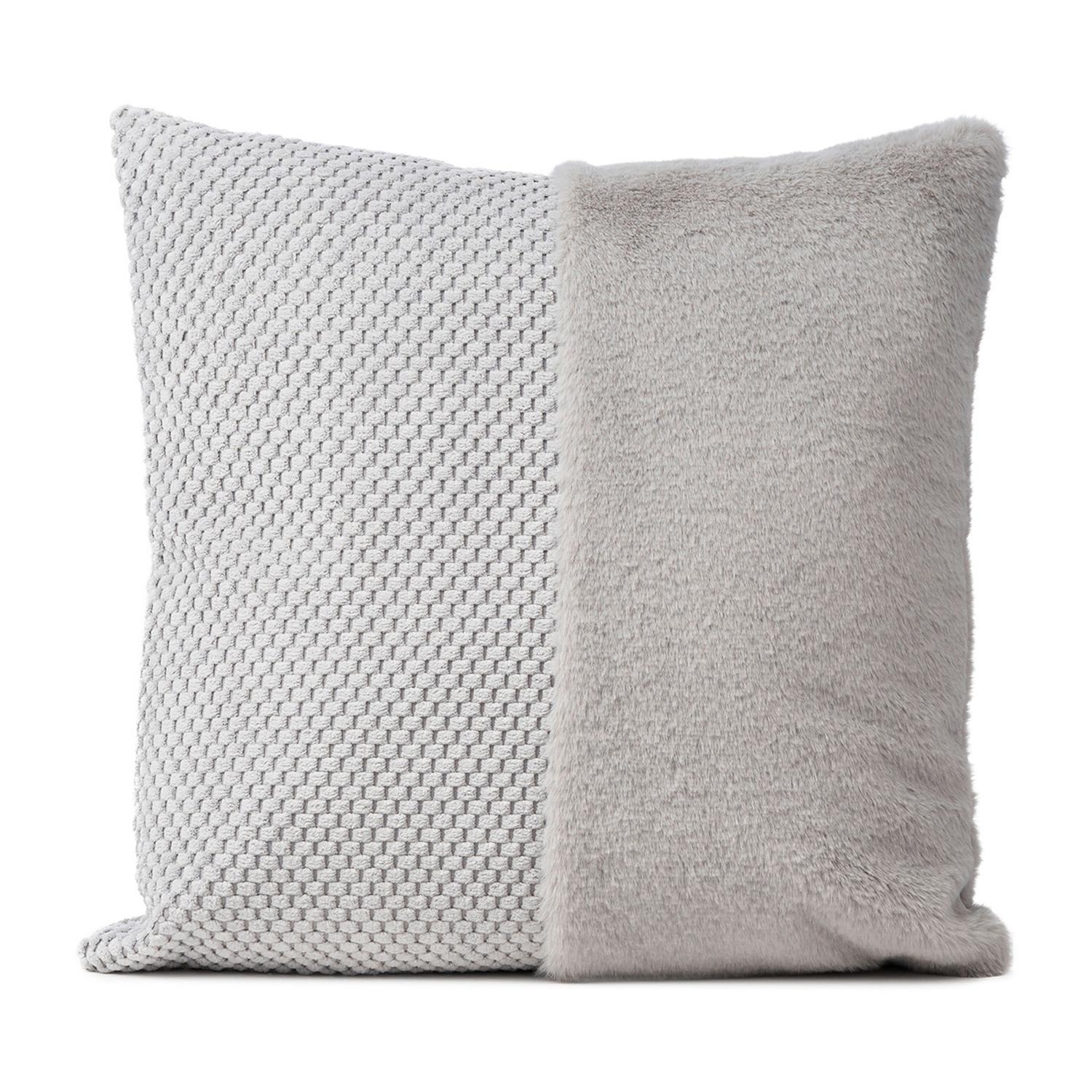 Diese Kissenhülle SVELA in Silbergrau von Gözze kombiniert zwei attraktive Strukturen: Eine Hälfte zeigt eine moderne Bubbleoptik, die andere eine weiche Kurzflor-Optik. Mit einer Größe von 50 x 50 cm eignet sie sich ideal für dekorative Kissen im Wohn- oder Schlafzimmer. Gefertigt aus Polyester, ist sie angenehm pflegeleicht. Der praktische Reißverschluss ermöglicht ein einfaches Abnehmen des Bezugs. Die Hülle ist bis 30 °C waschbar, jedoch nicht für den Trockner geeignet – perfekt für stilvolle und gemütliche Akzente.