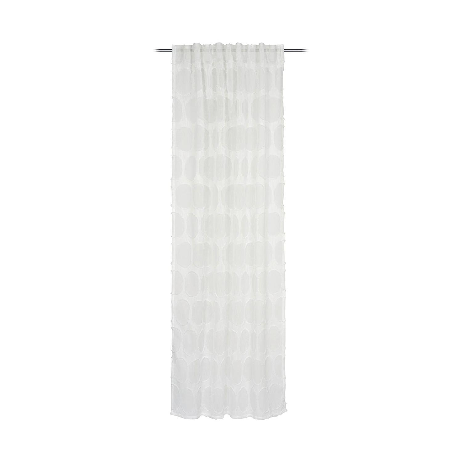 Der verdeckte Schlaufenschal LOOPING der Marke Gözze ist aus Polyester gefertigt und in der Farbe Weiß erhältlich. Er ist mit Kreisen gemustert und verfügt über verdeckte Schlaufen zur Aufhängung. Die Maße betragen 245 cm in der Länge und 140 cm in der Breite.
