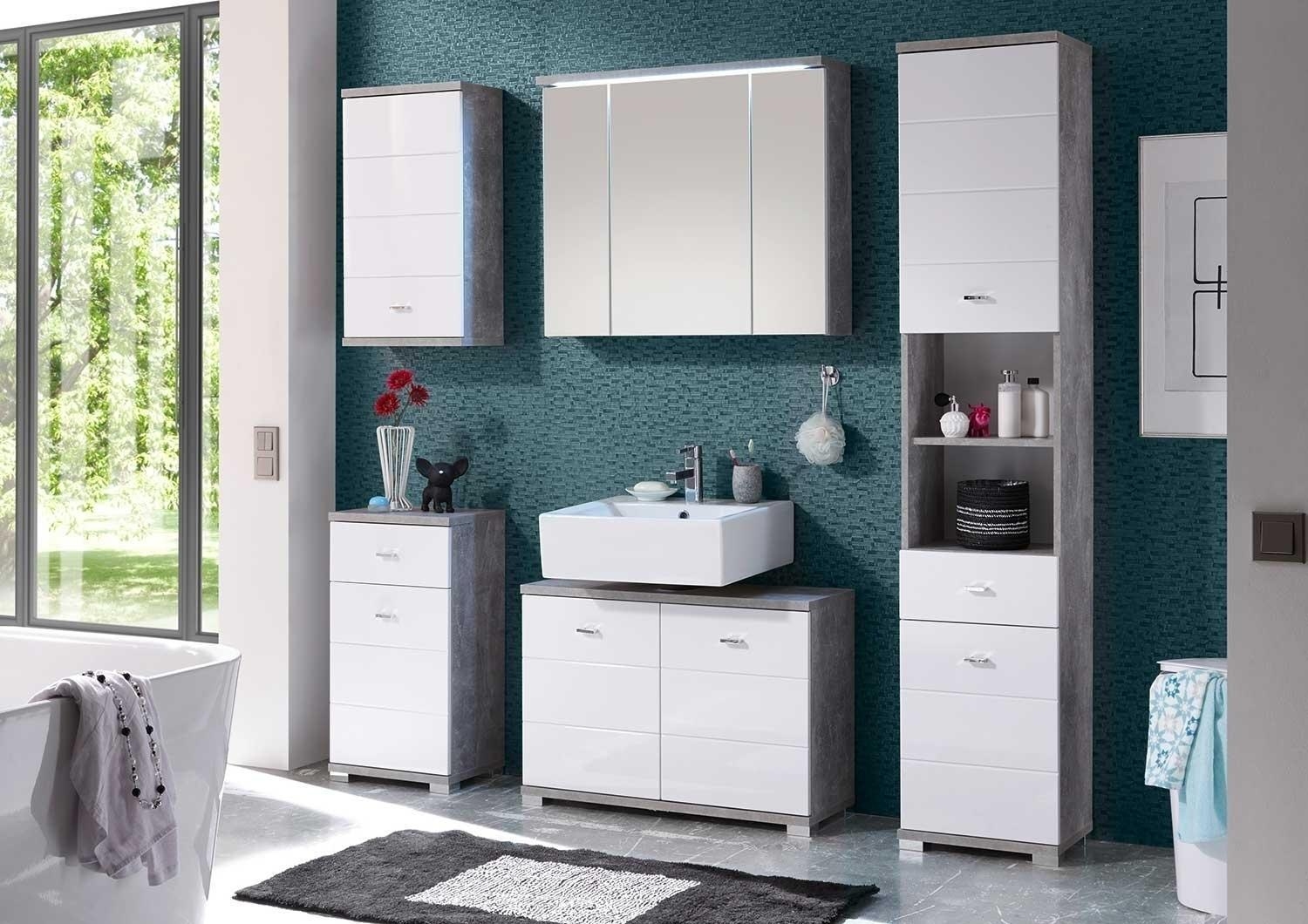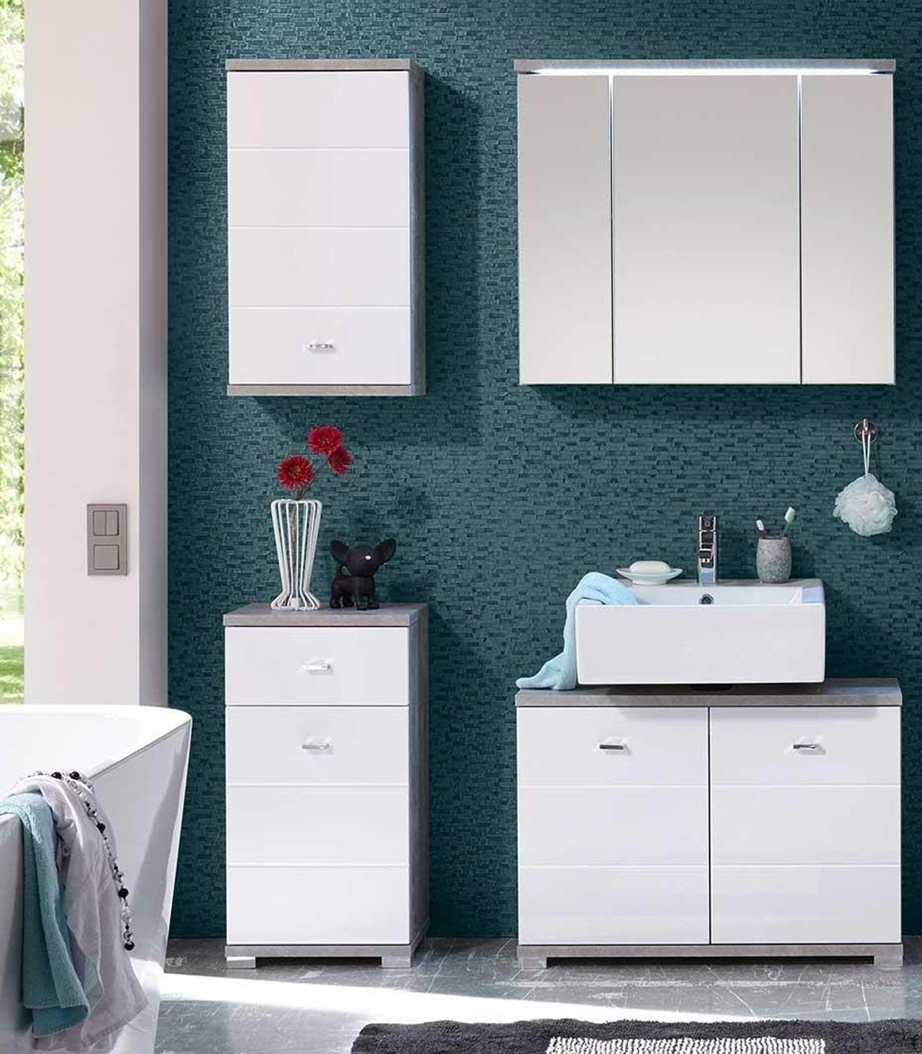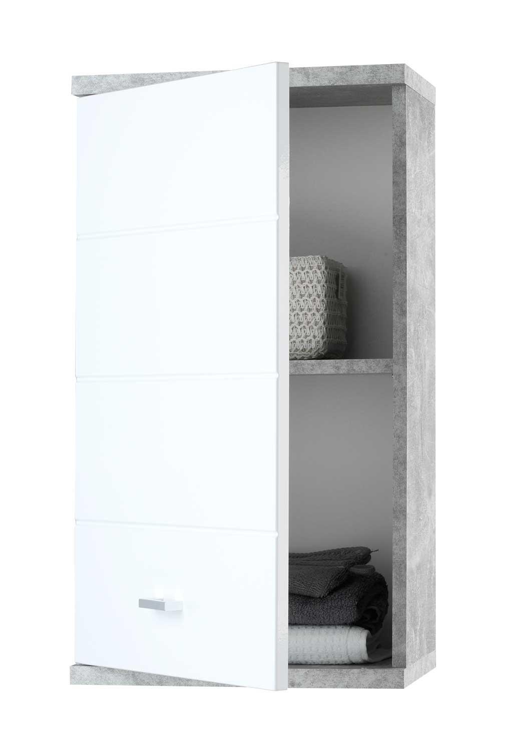 Weiß Hochglanz - Betondekor - B 38 cm - 1 Tür