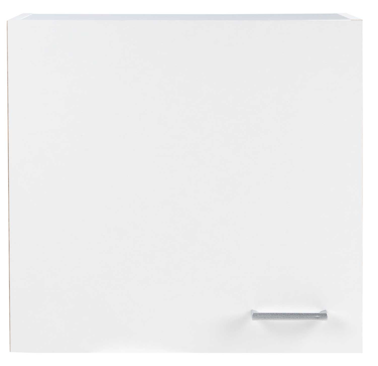 - Hängeschrank in weiß mit Kunststoffgriffen in silbergrau