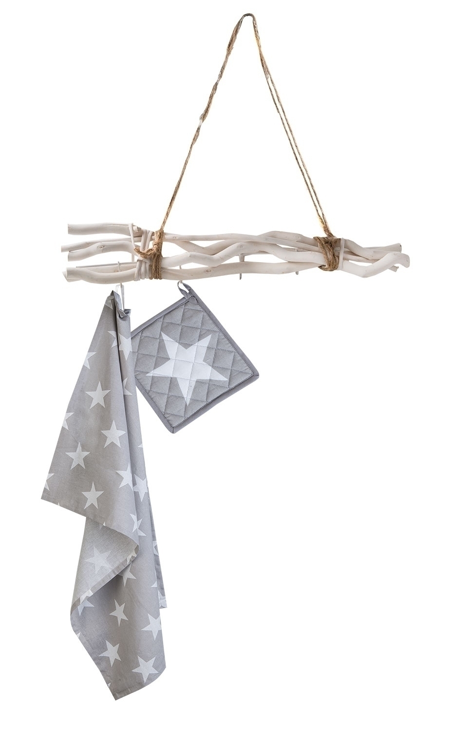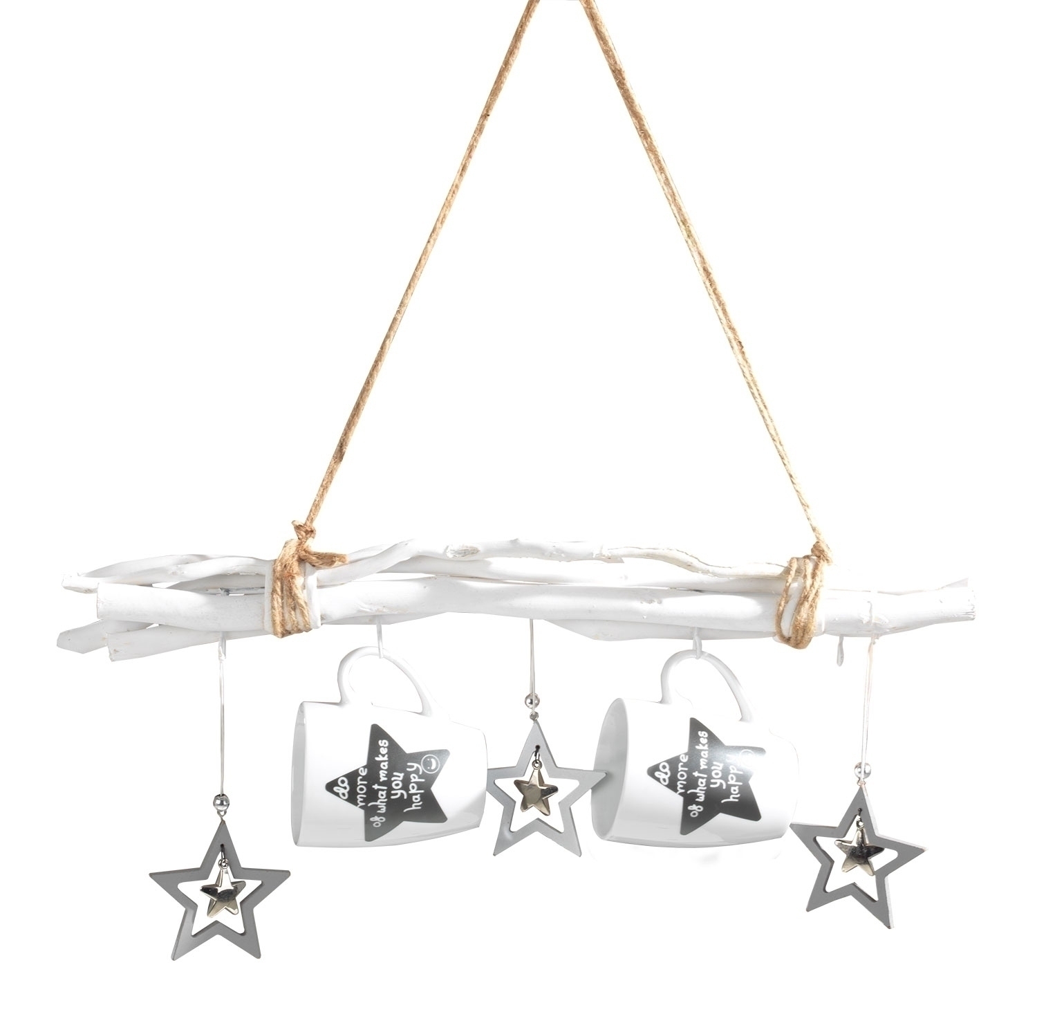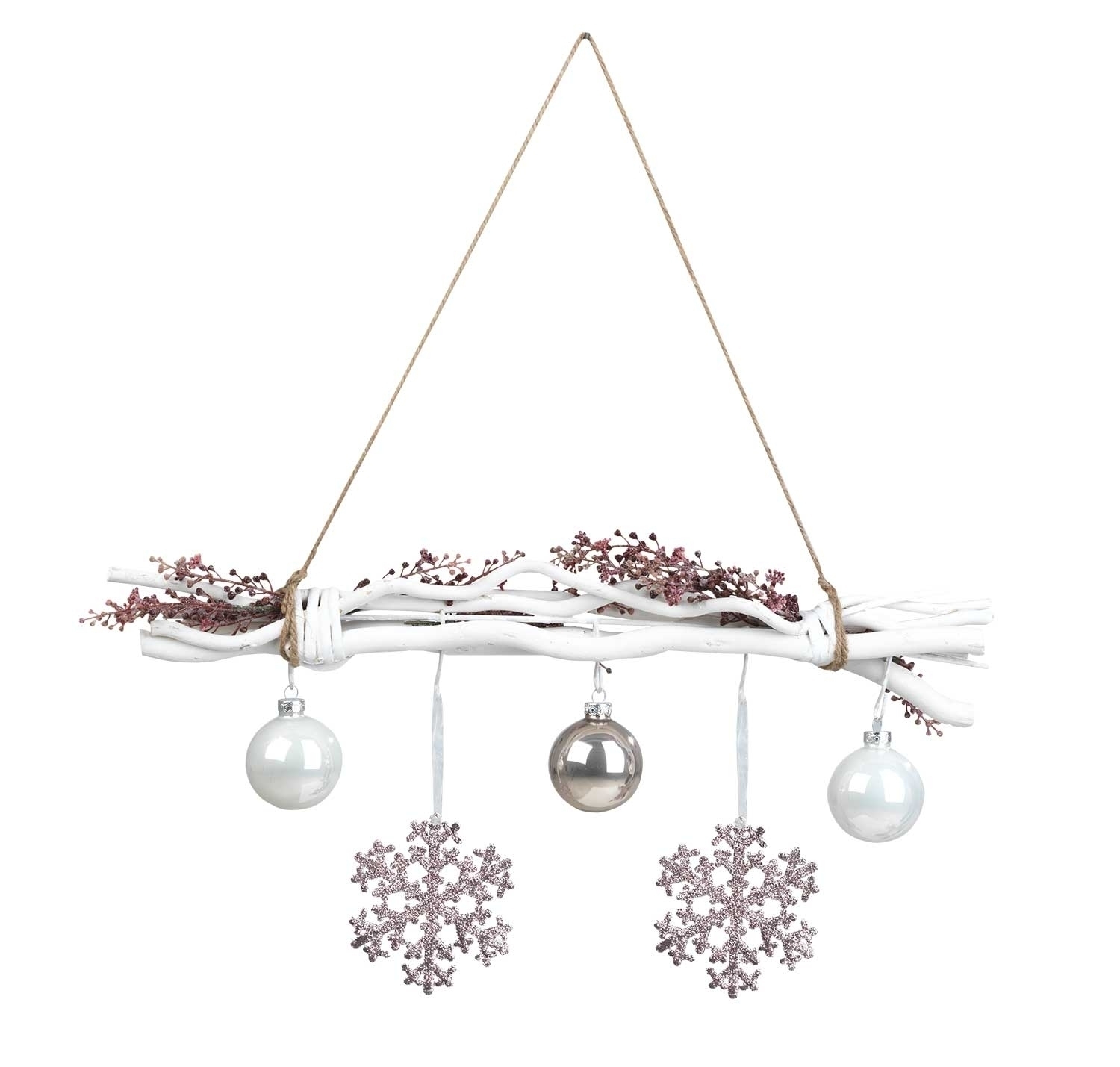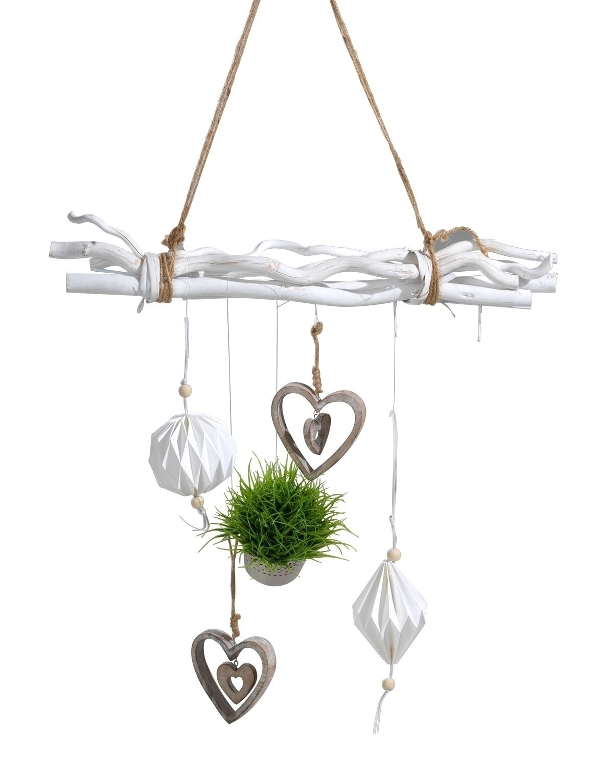 Äste Weiß lackiert - 5 Haken - mit Seil zum Hängen