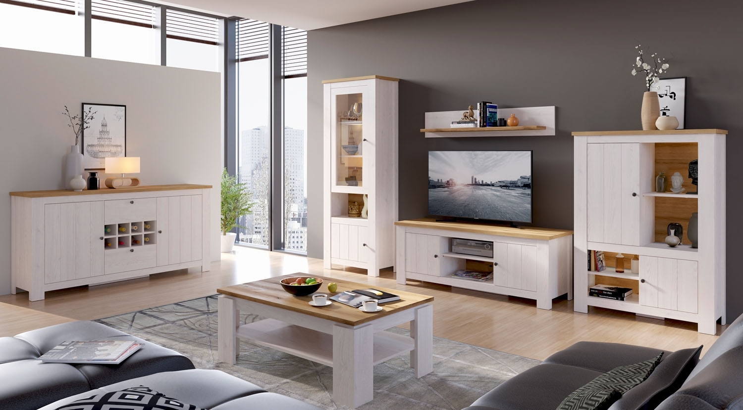 Sibiu Lärche Dekor - Coast Evoke Eiche Dekor - B 100 cm - 2 Türen - 4 offene Ablageflächen