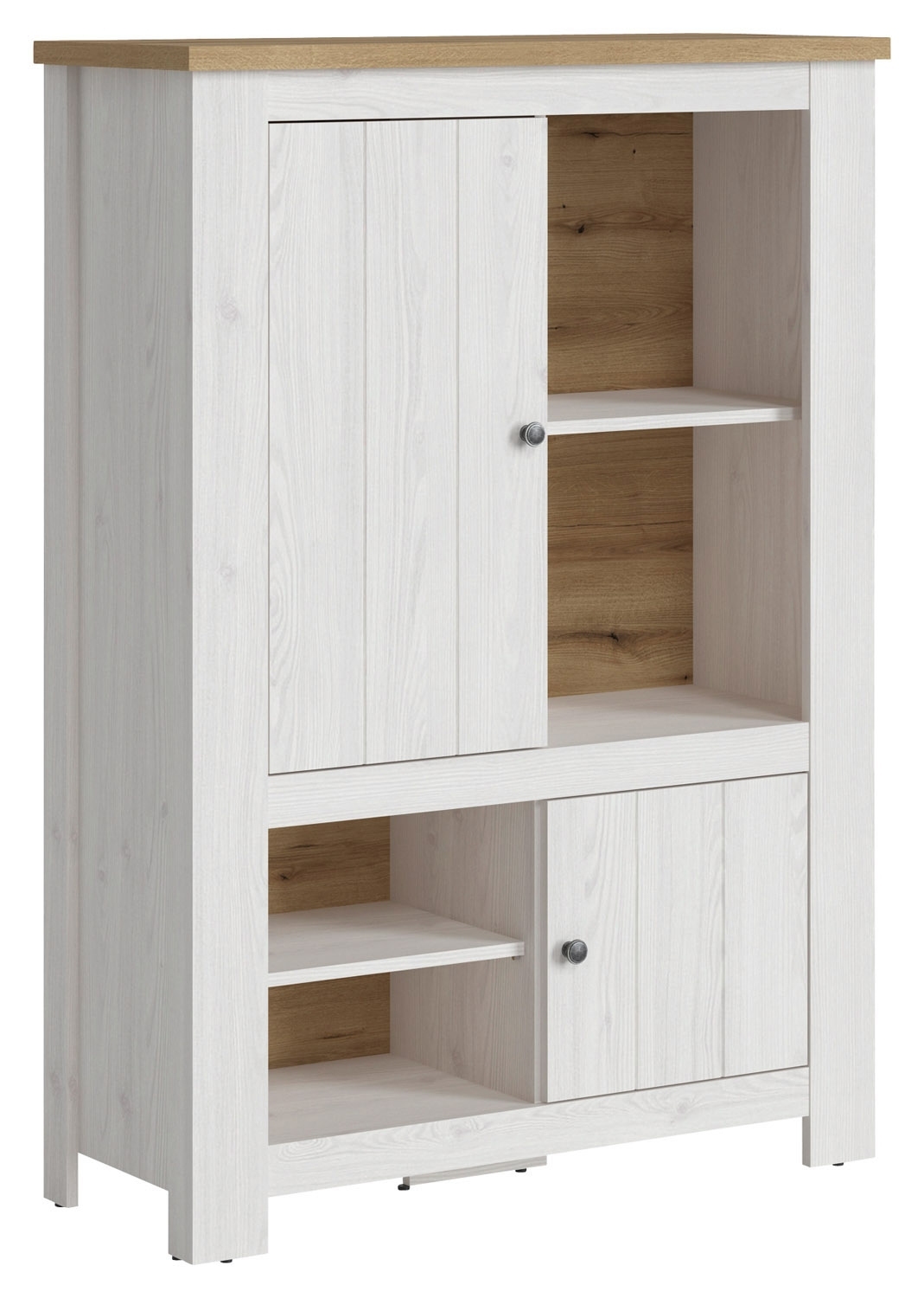 | Lieferumfang: | 1 Highboard mit 2 Türen, 4 offenen Ablageflächen und 4 Einlegeböden |